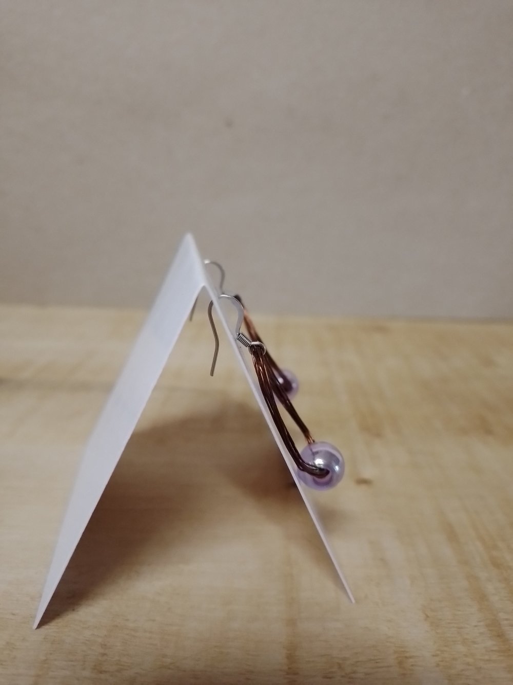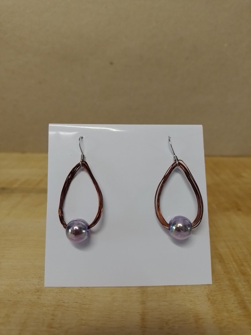 Elles sont composées d'une attache en acier inoxydable, de fils de cuivre agrémentés d'une perle nacrée mauve.