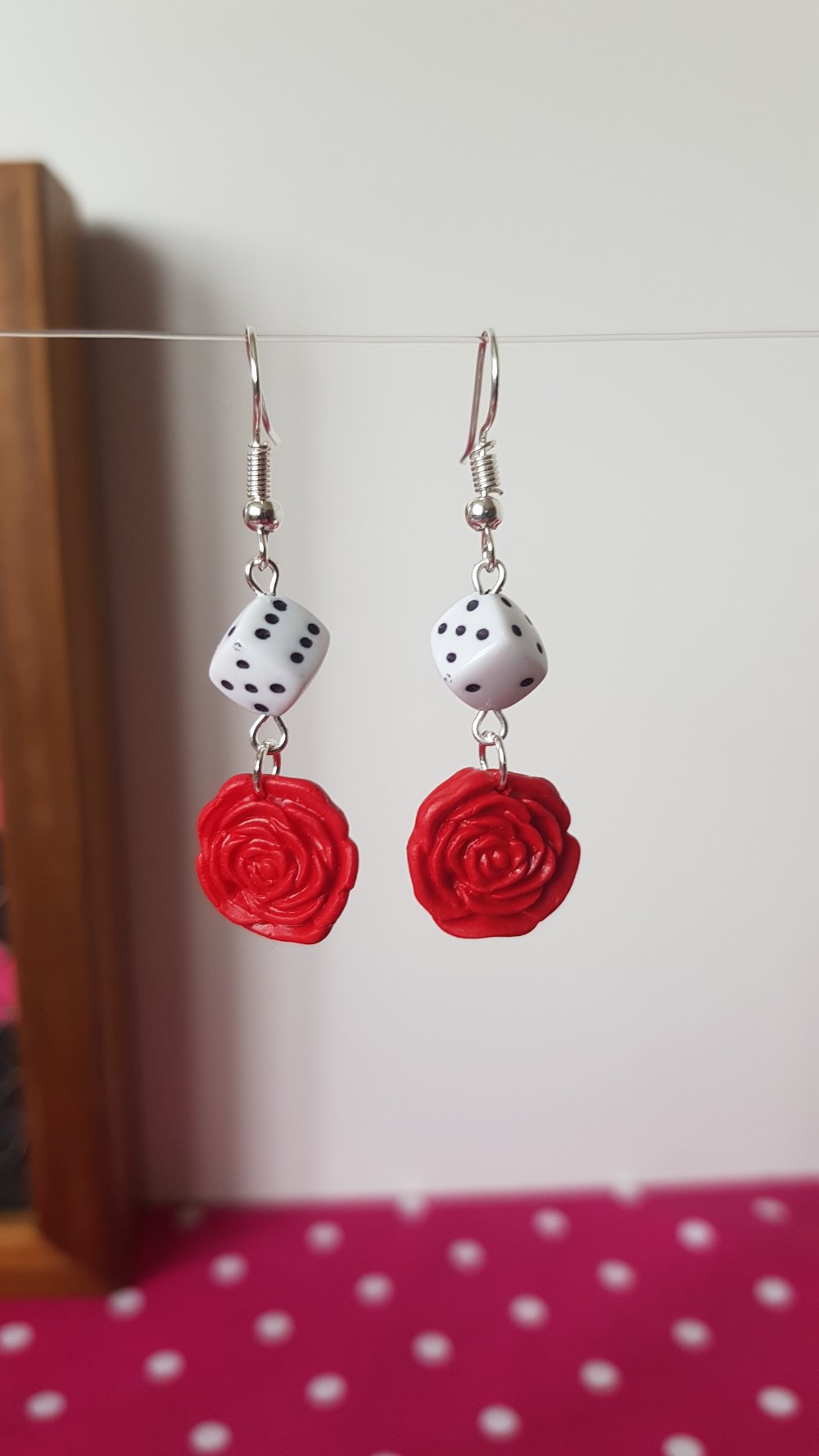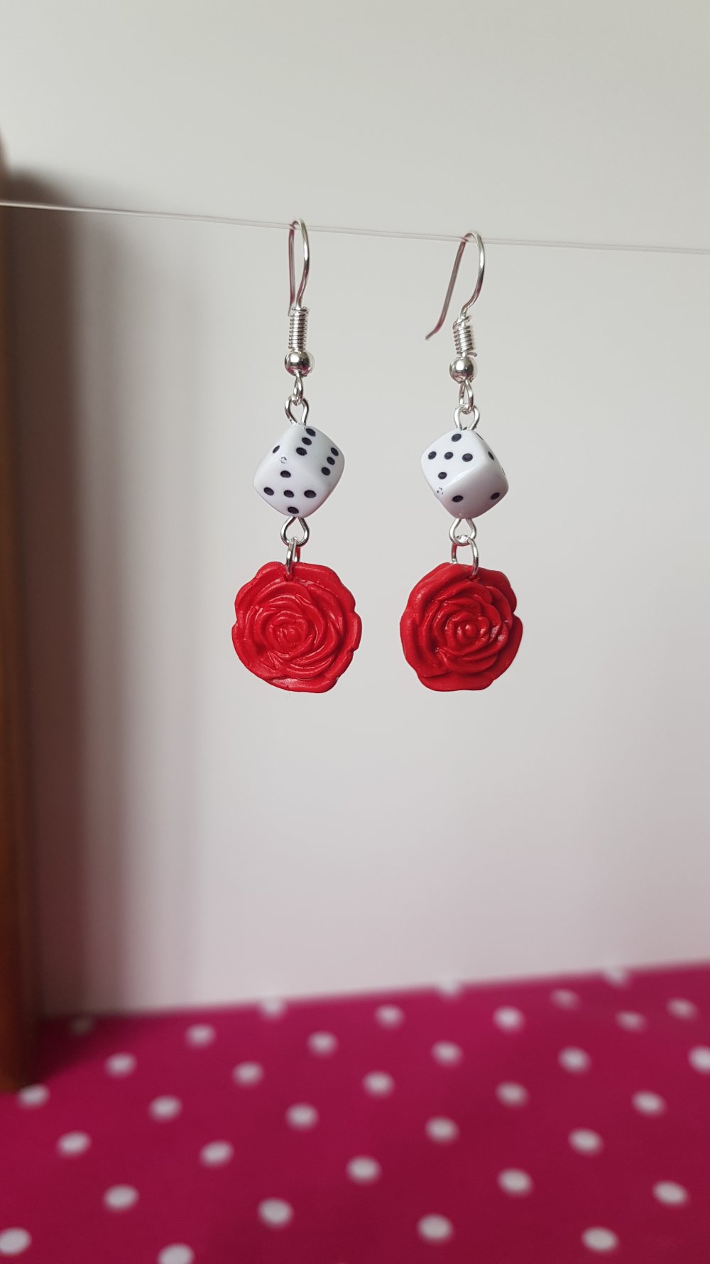 Longueur totale avec crochet de 5cms et rose de 15mm de diamètre. Toutes les boucles d'oreilles sont vendues avec un stoppeur afin de ne pas les perdre .