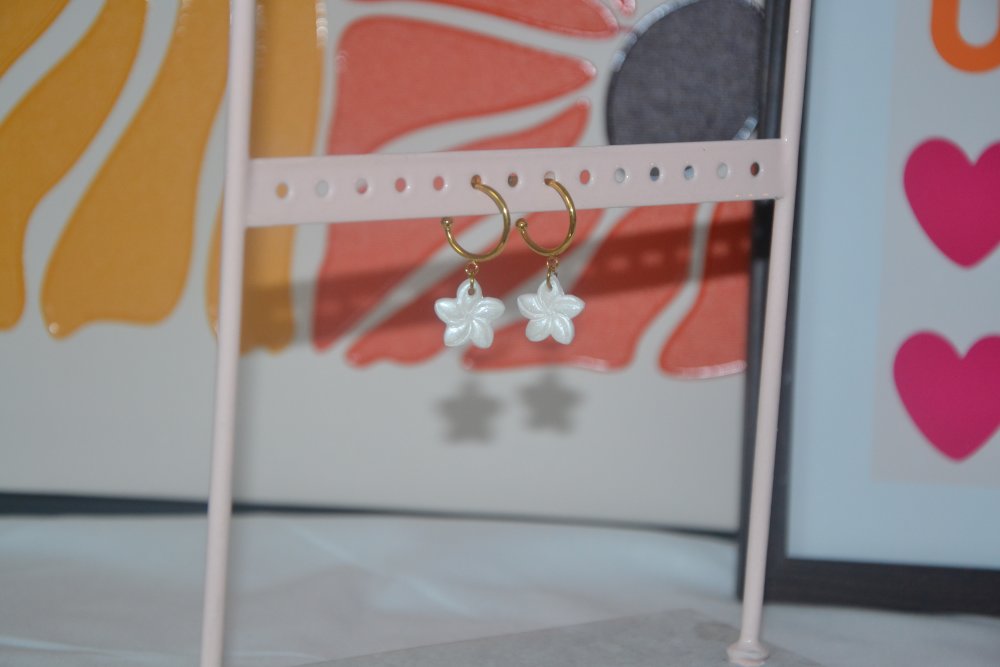 Boucles d'oreilles fleurs blanche irisé