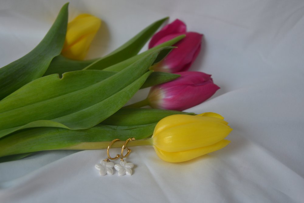 Chaque fleur est réalisée à la main, ce qui rend chaque paire légèrement unique.