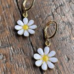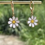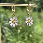 Très jolies petites boucles d’oreilles constituées d’une mini créole dorée de 1cm agrémentée d’un pendant forme marguerite.