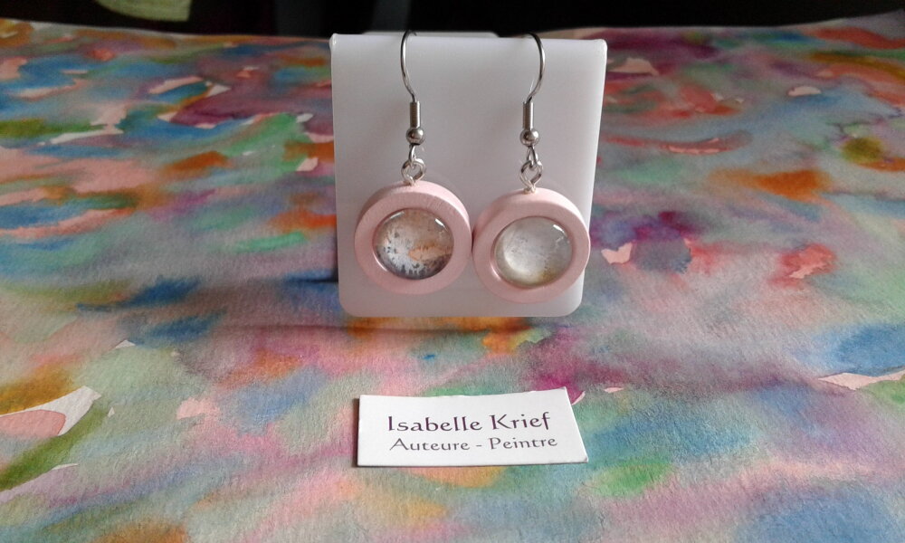 Boucles oreilles bois rondes,aquarelle originale ooak,artiste peintre française,rose violet jaune orange,crochets acier,bobo boho gothique abstrait,art deco art nouveau baroque,victorien fashion punk,edouardien fantastique abstrait,art brut art moderne,cadeau fete anniversaire noel,fait mains en france,