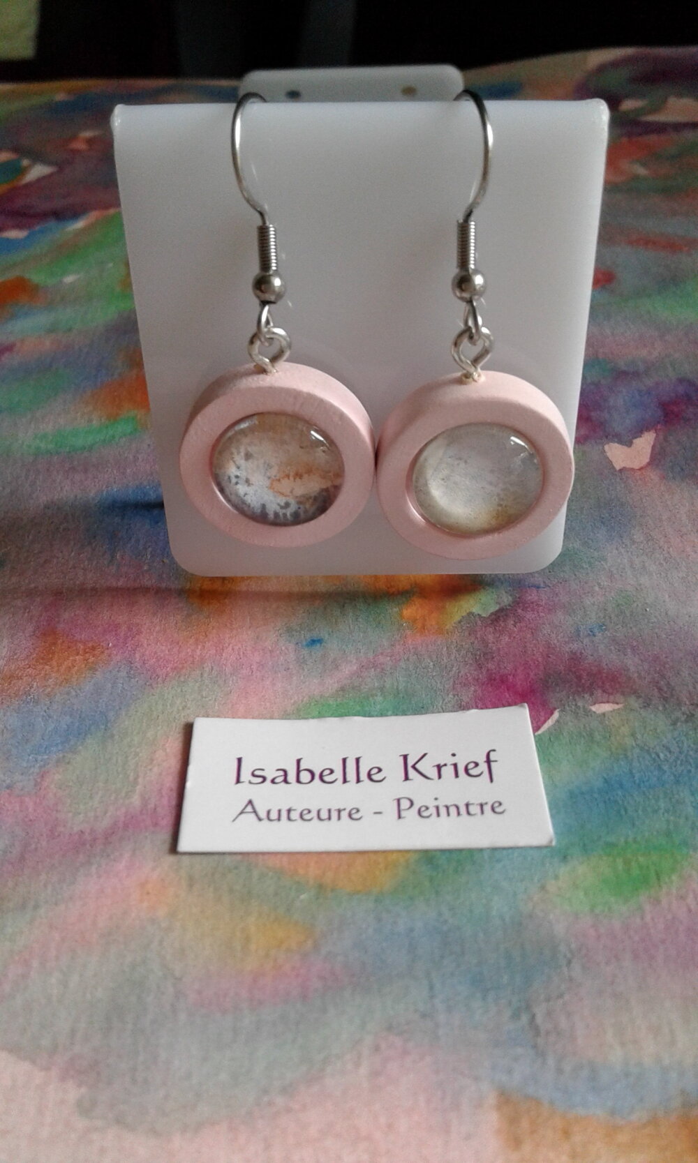 Artiste peintre, je peins des planches d'aquarelle et je prélève des cabochons, afin de proposer des créations uniques originales, tout est fait mains,made in france,