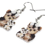 boucles oreilles pendantes plastique acrylique laser cut chien Yorkshire maman et bebe,marron rose blanc noir,crochets en acier inoxydable,