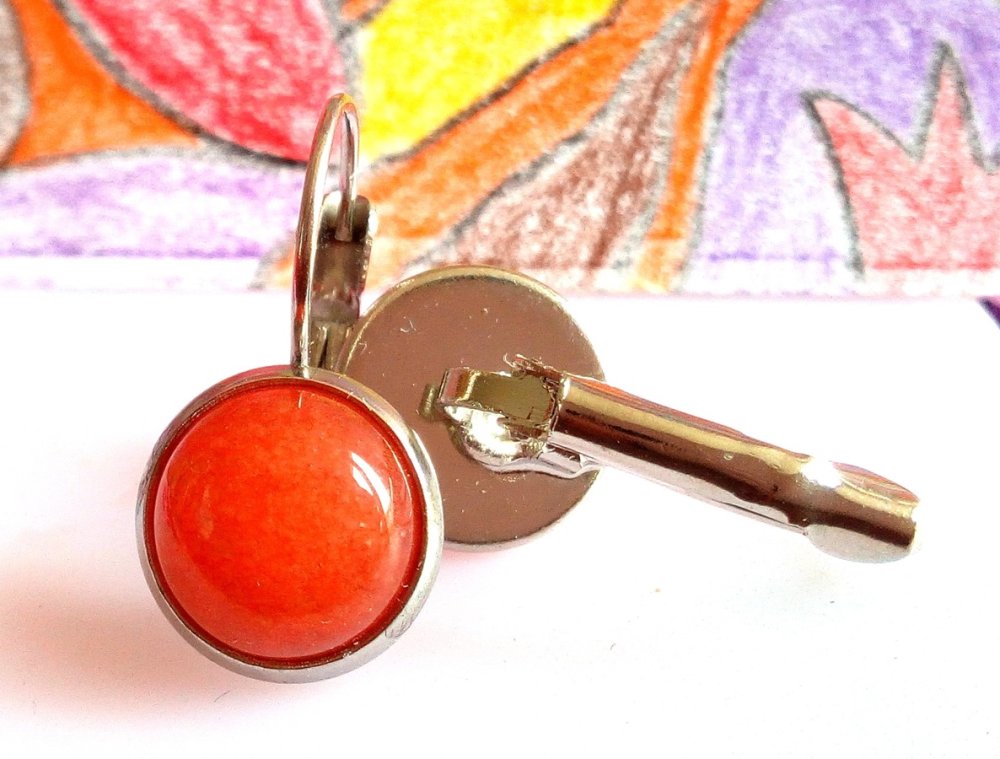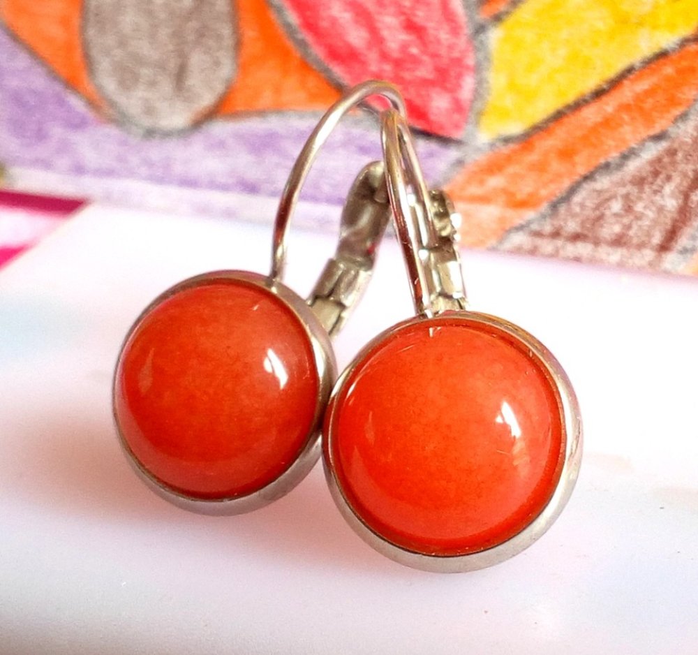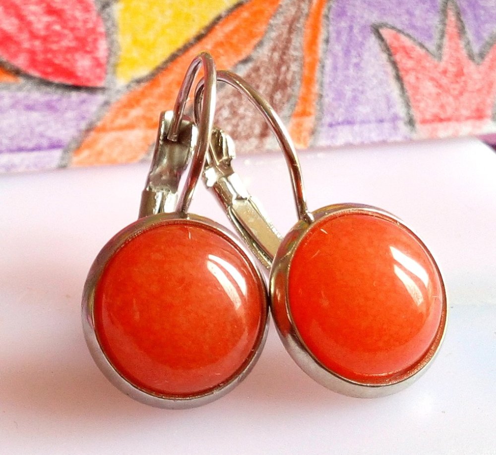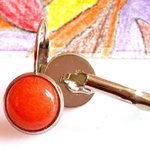 Très jolie paire de dormeuses, nickel free,boucles oreilles percées,cabochons ronds 10mm,calcite orange quartz pierre precieuse,theme fleuri fantastique,bijou femme homme unisex,cadeau fete anniversaire noel,fete des meres st valentin,gothique bobo boheme,victorien baroque punk,rococo edouardien,amour amitié,