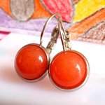 Calcite orange, boucles oreilles dormeuses argente rhodie avec cabochons ronds,quartz pierre fine,fait mains en france,cadeau fete noel