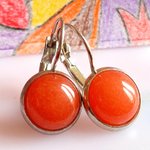 Calcite orange, boucles oreilles dormeuses argente rhodie avec cabochons ronds,quartz pierre fine,fait mains en france,cadeau fete noel anniversaire,