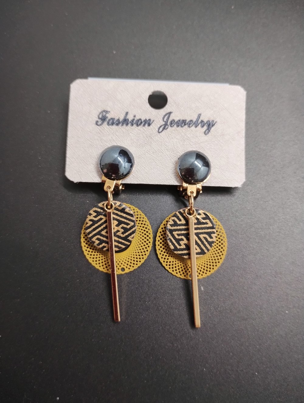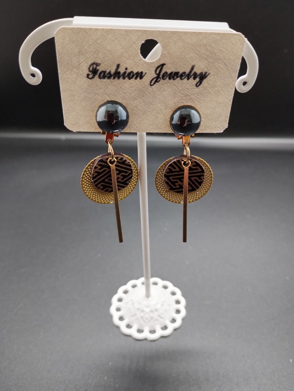 Clips d'oreilles ,bois/papier, accessoires en acier inoxydable placage or