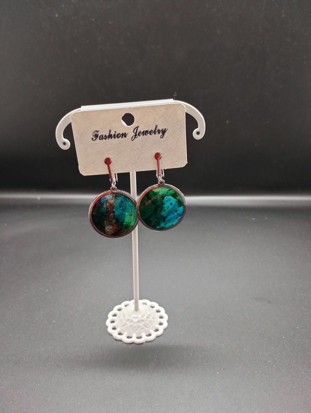 Je crée des objets en bois et des bijoux à l'aide de ma scie à chantourner mais je travaille également d'autres matières comme la résine.