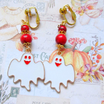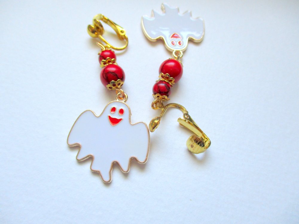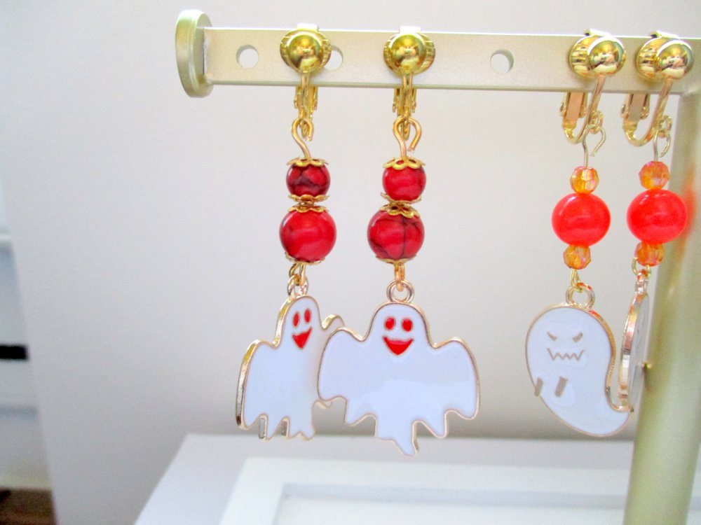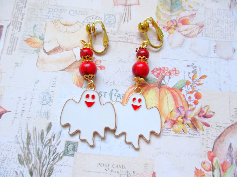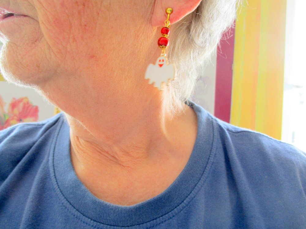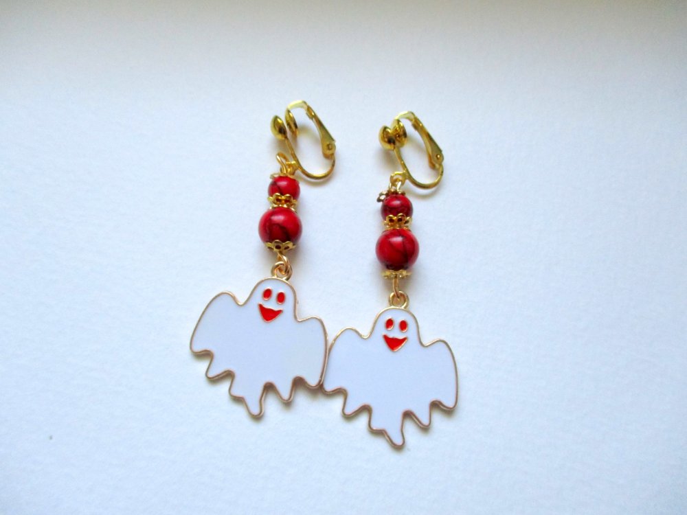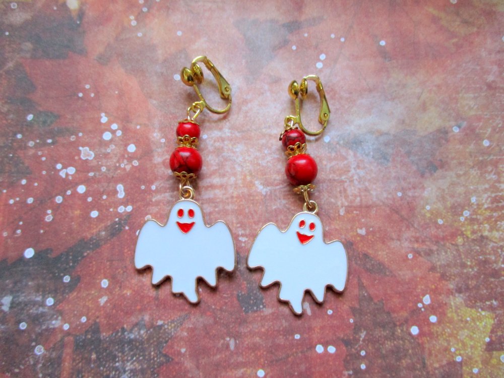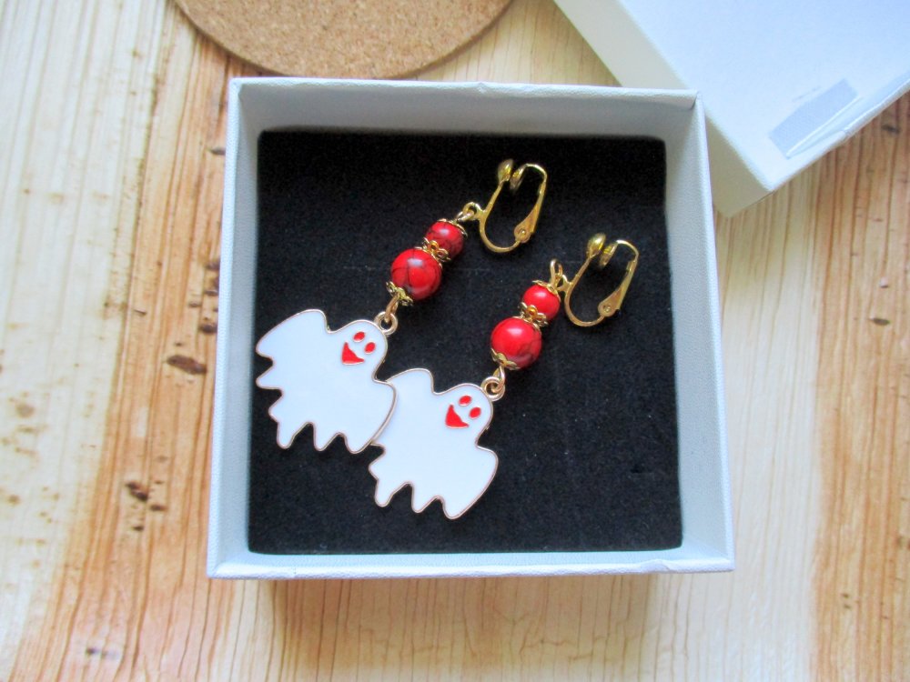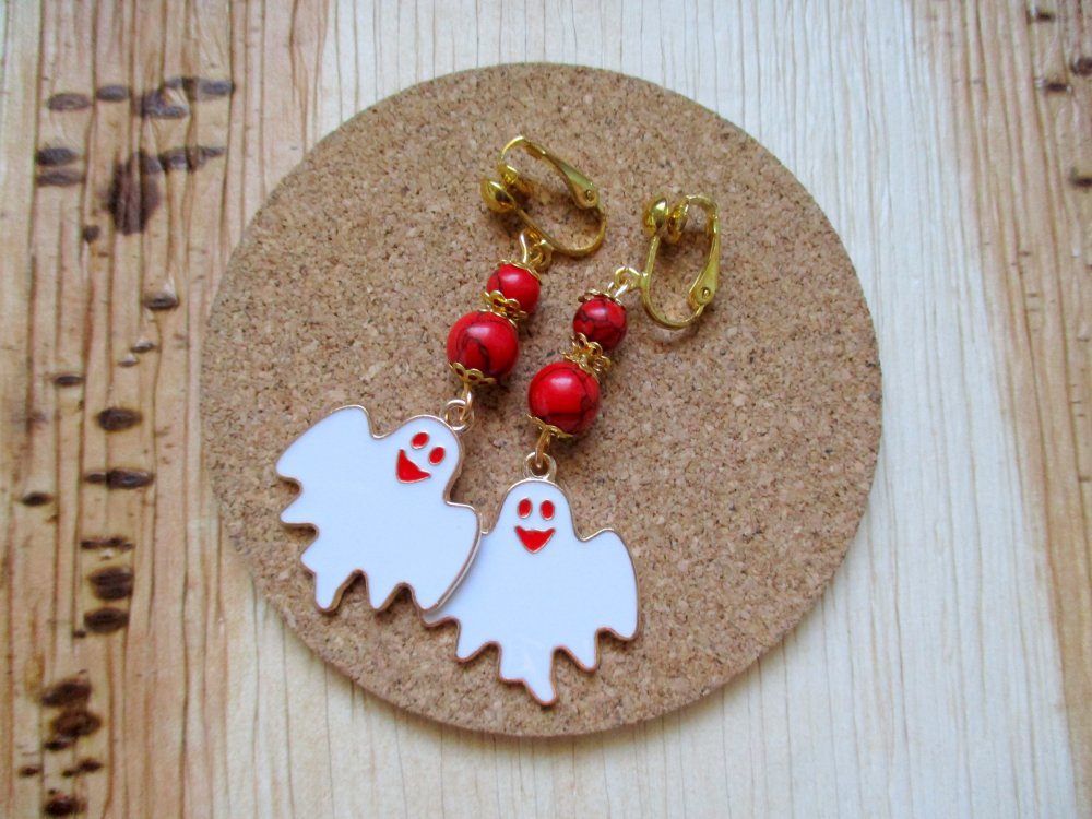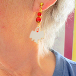 Un grand fantôme rigolo est suspendu à deux perles howlite rouge