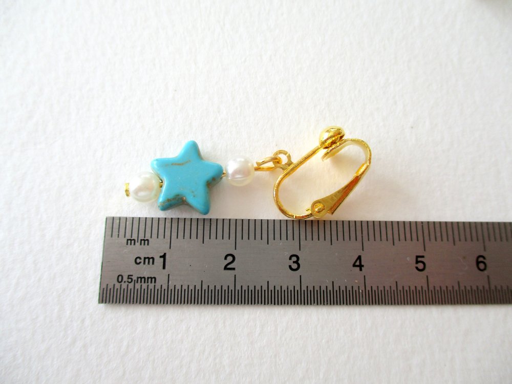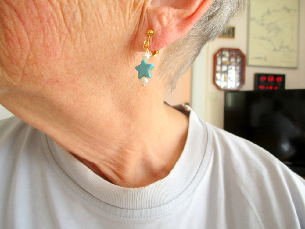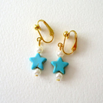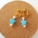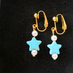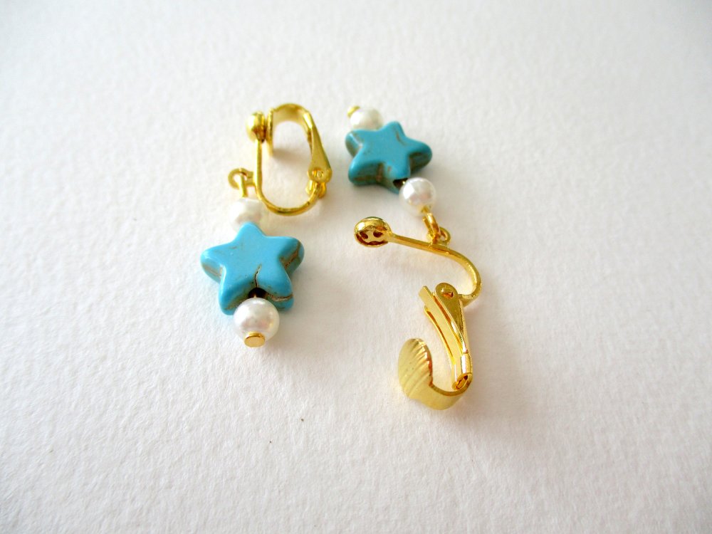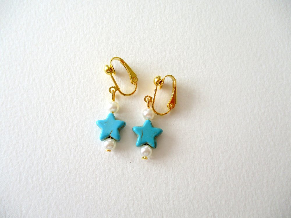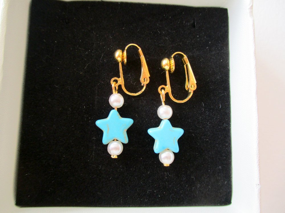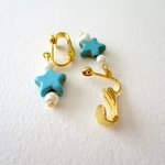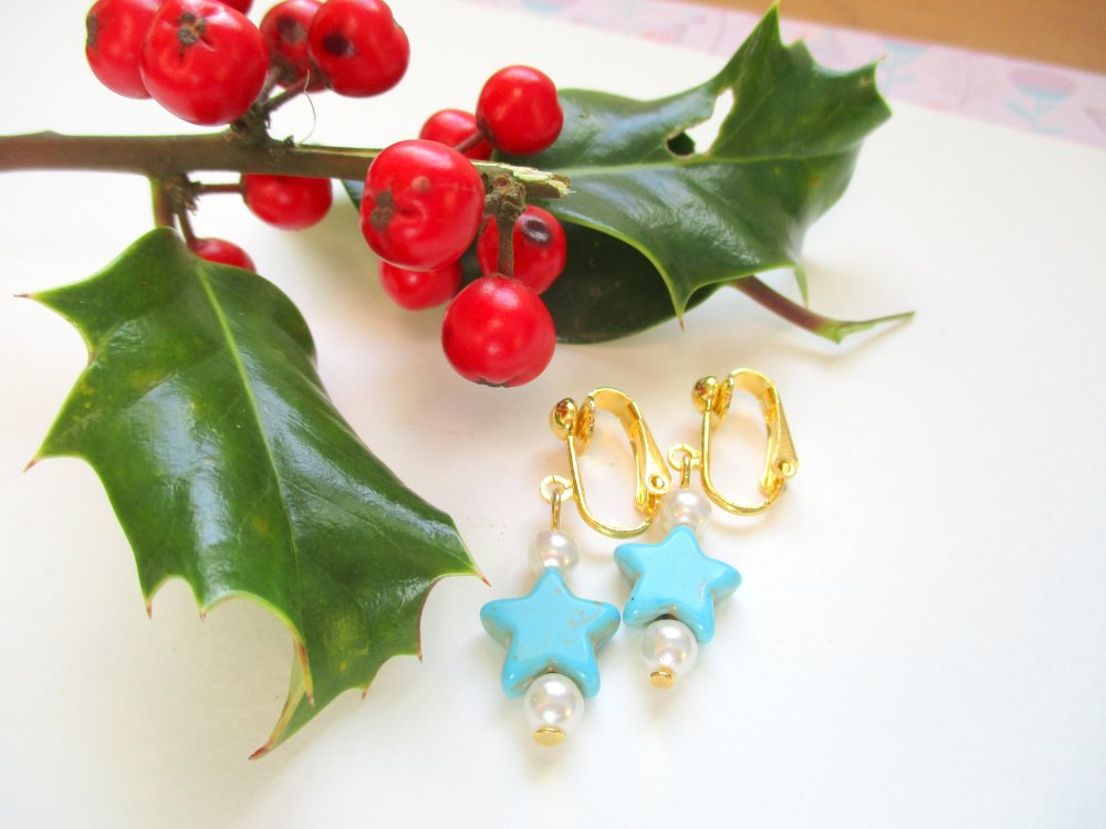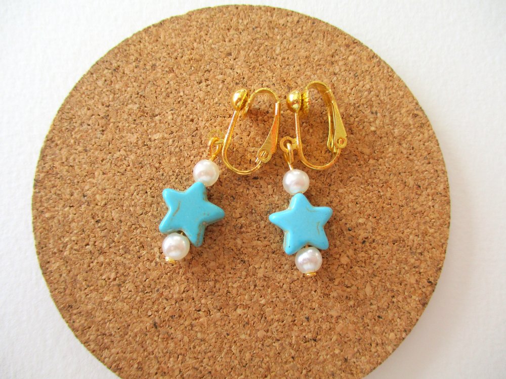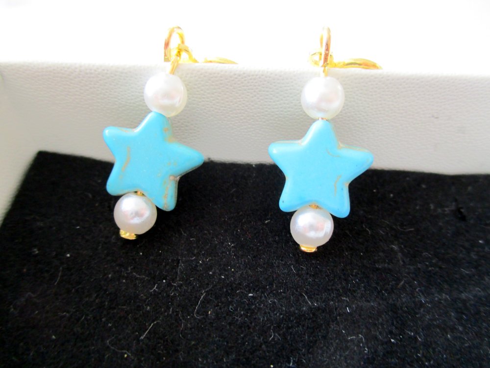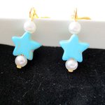 Petites étoiles turquoise entourées de petites perles nacrées blanches
