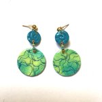 Boucles d’oreilles en argile polymère bleu vert avec gravures