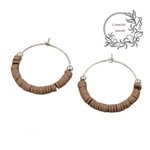 Boucle d'oreille réaliser avec des supports créoles en acier inoxydable, 2 perles rondes en métal et des rondelles couleur en fimo.