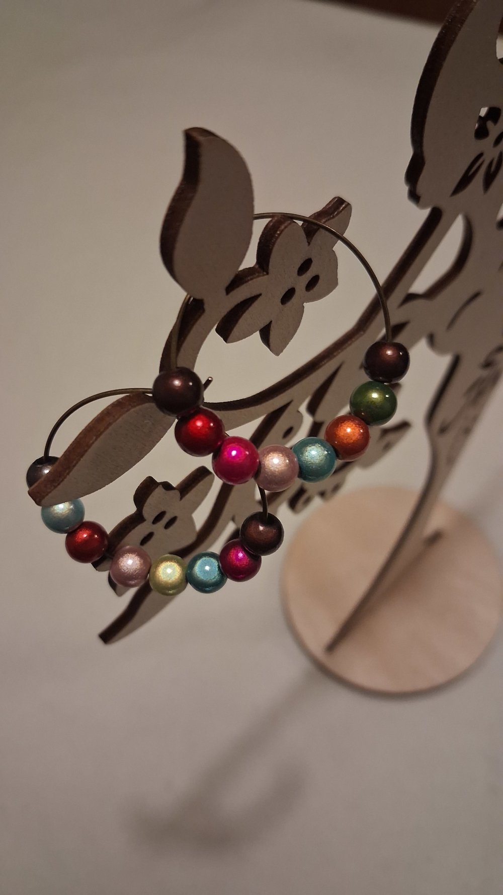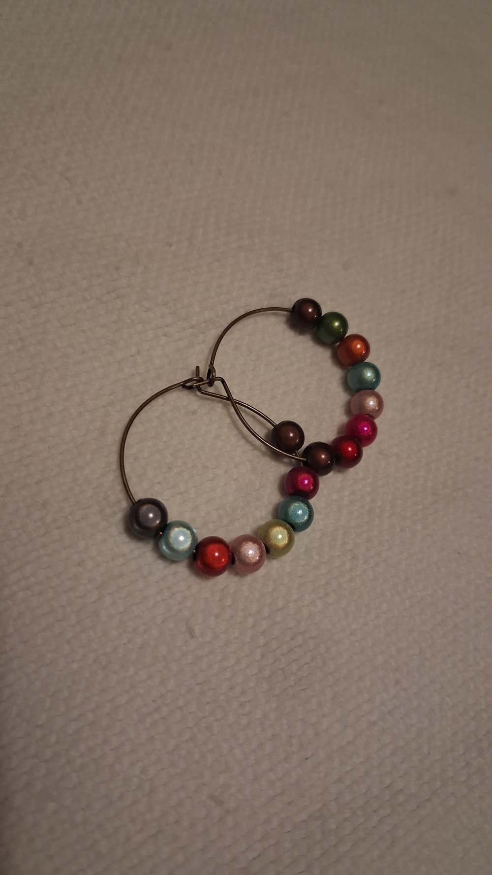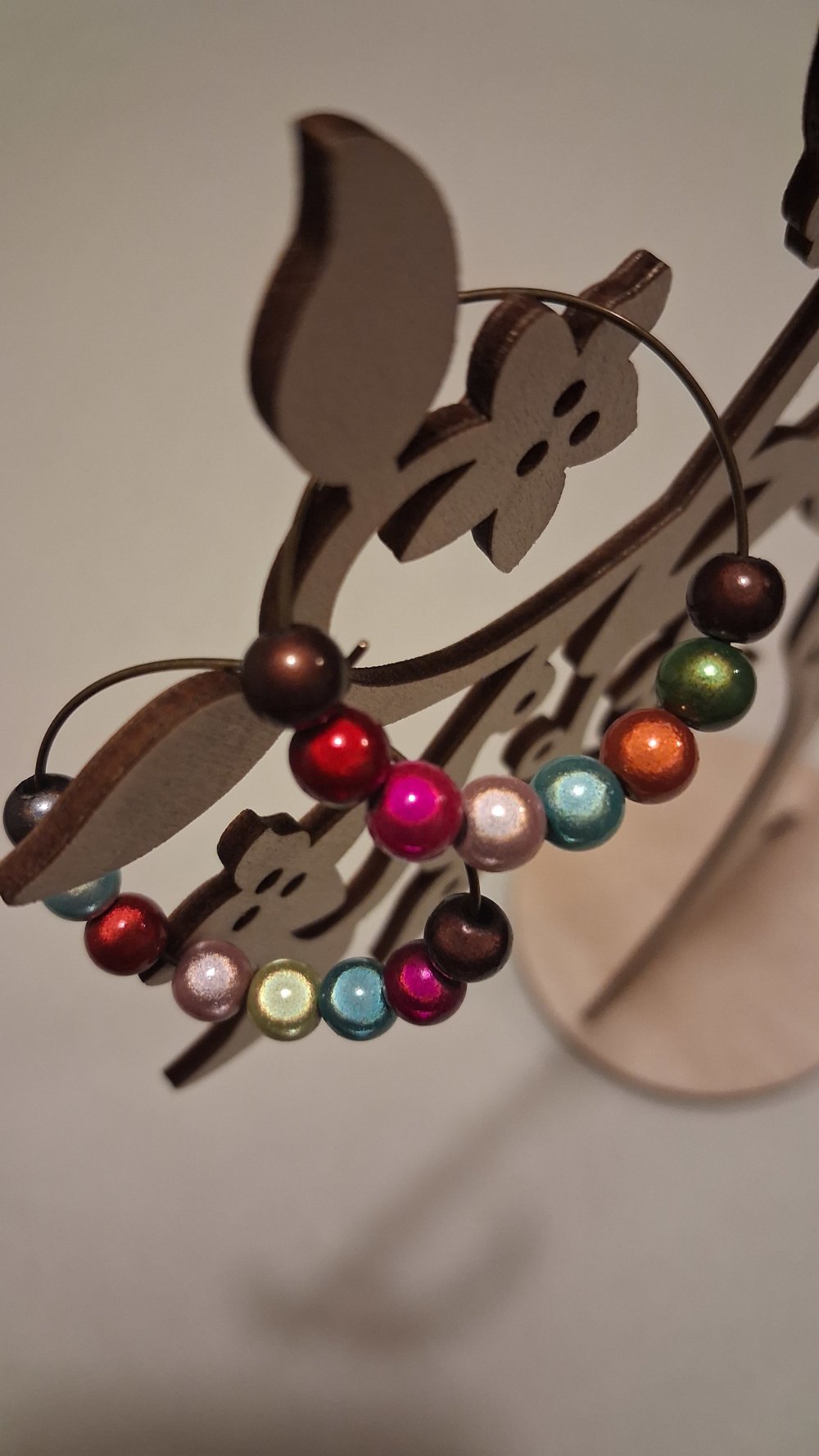 Creoles couleur bronze avec perles magiques miracles multicolores