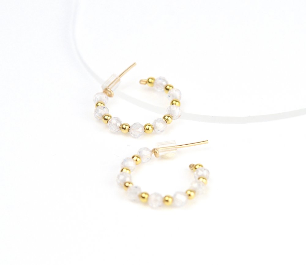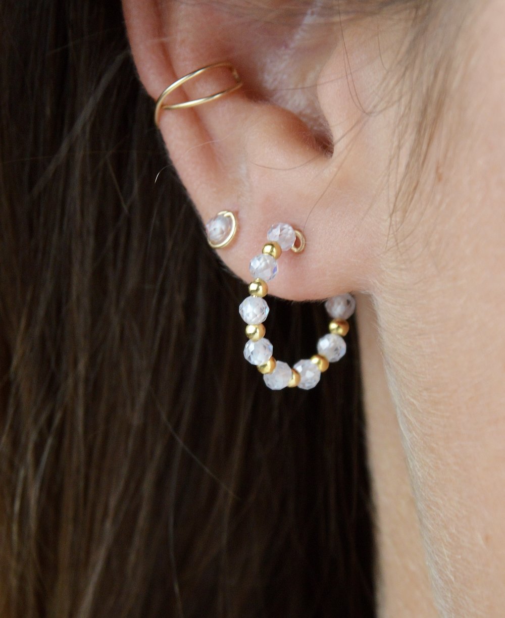 Créoles en or laminé 14k et zircon naturel - créoles Véga