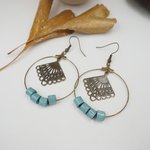Jolies créoles composées de 4 perles de papier chiffon d'un bleu pastel ! Breloque centrale délicate pour un style rétro !