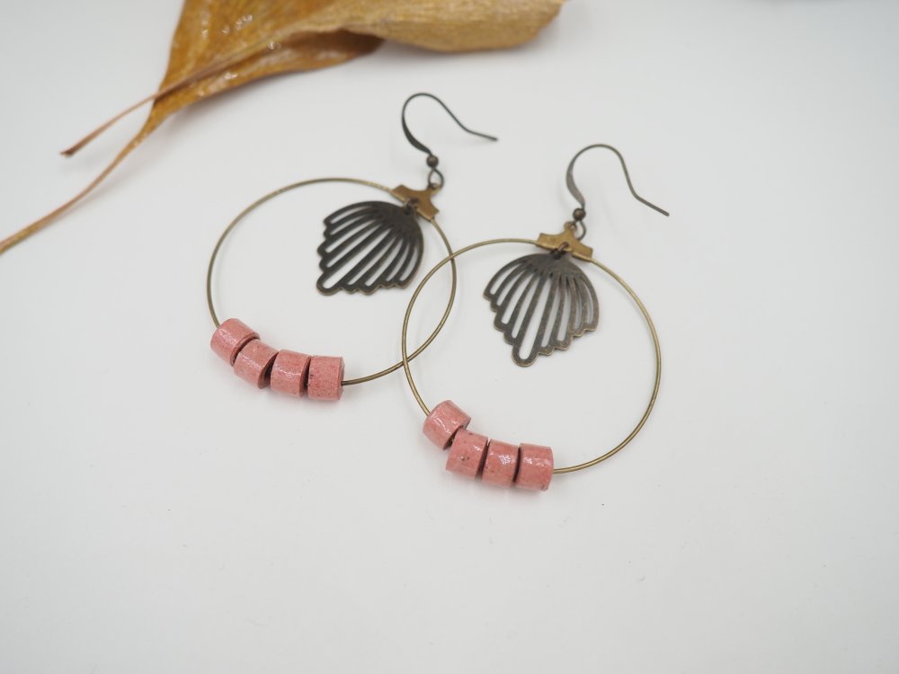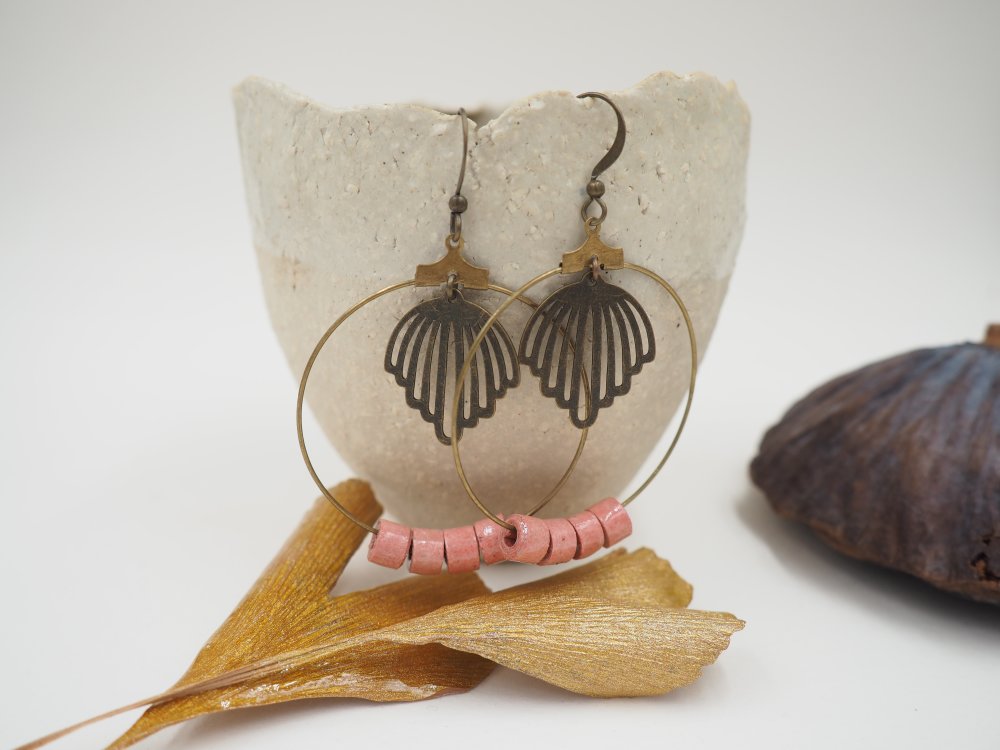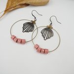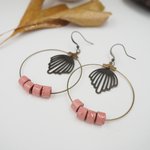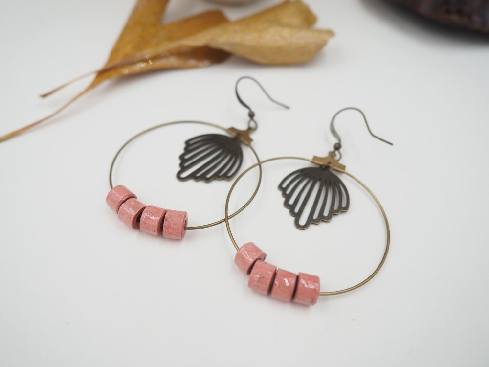Jolies créoles composées de 4 perles de papier chiffon d'un rose clair frais ! Breloque centrale délicate pour un style rétro !
