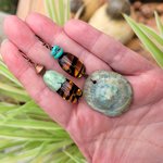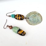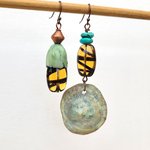 Honneur à la couleur turquoise; rehaussée par un jaune soleil brillant et pour équilibrer l'ensemble, le mystérieux de la turquoise et du cuivre: un trésor à portée d'oreille !!!!