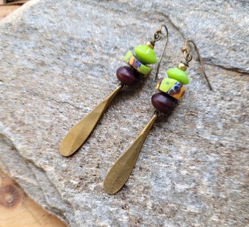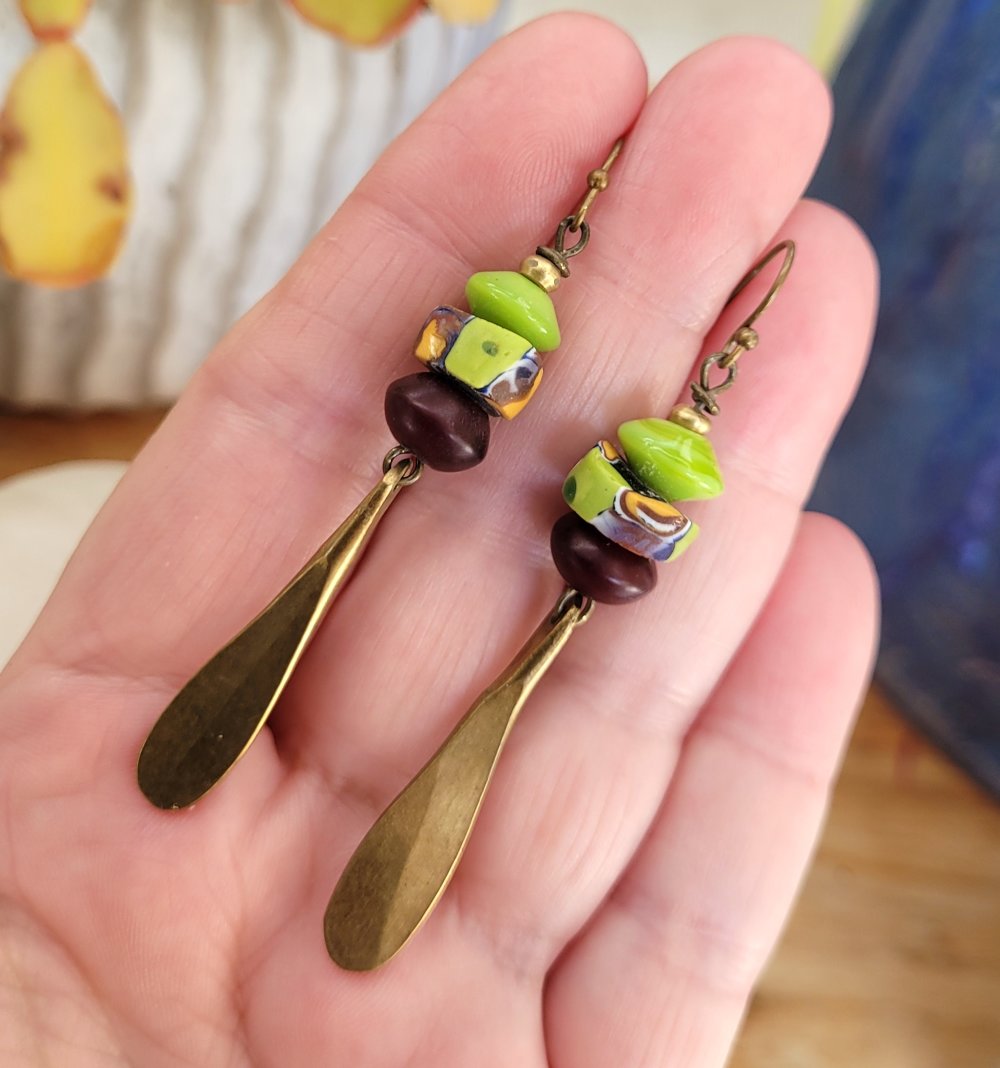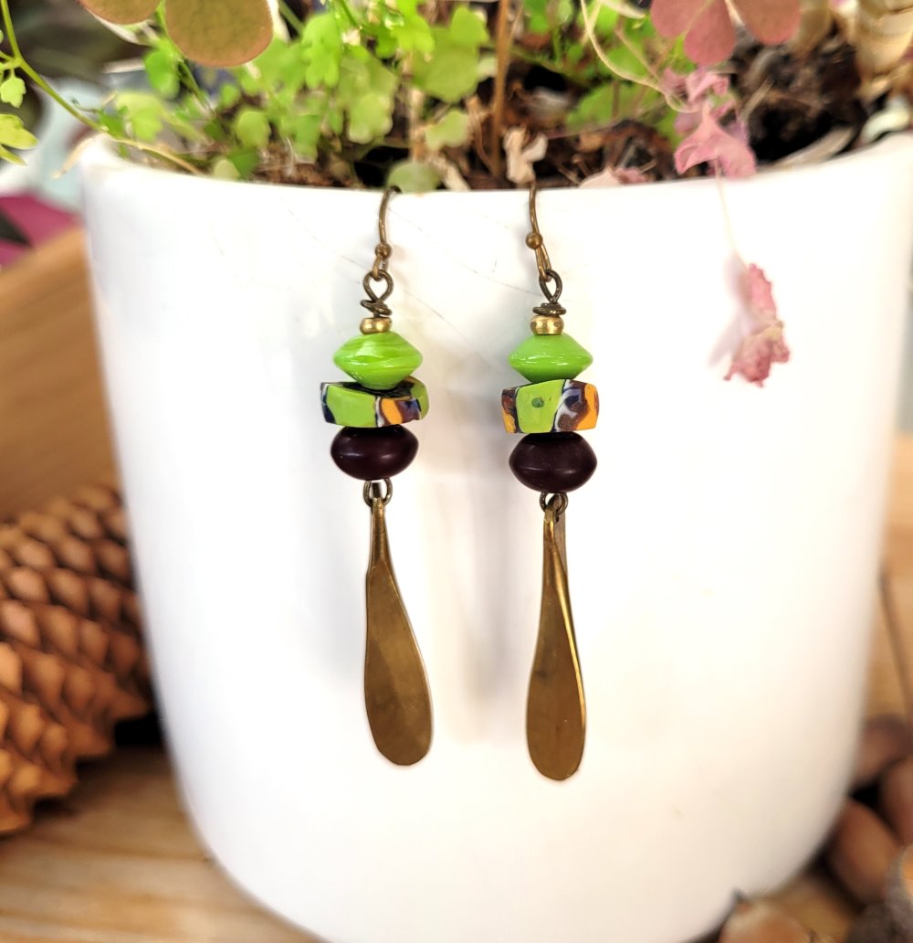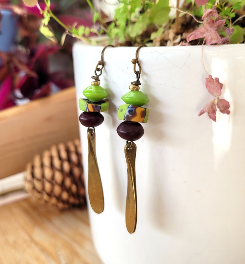 Laissez-vous emporter par l’âme nomade de ces boucles d’oreilles uniques, faites main avec des matériaux chargés d’histoire et de voyage: