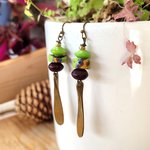 Fermoirs : Montées sur crochets bronze pour oreilles percées.