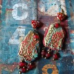 Des petites perles de verres rondes rouges,avec des perles de laiton, complètent la composition..