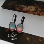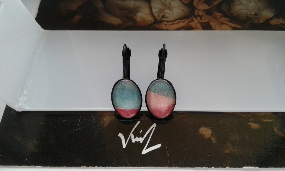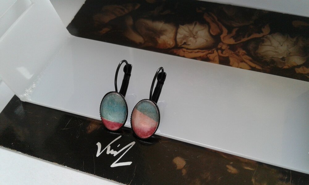 Dormeuses ovales,aquarelle originale ooak,artiste peintre française,bleu orange rouge noir,bobo boho gothique abstrait,art deco art nouveau baroque,victorien fashion punk,edouardien fantastique,art brut art moderne,cadeau fete anniversaire noel,fait mains en france,