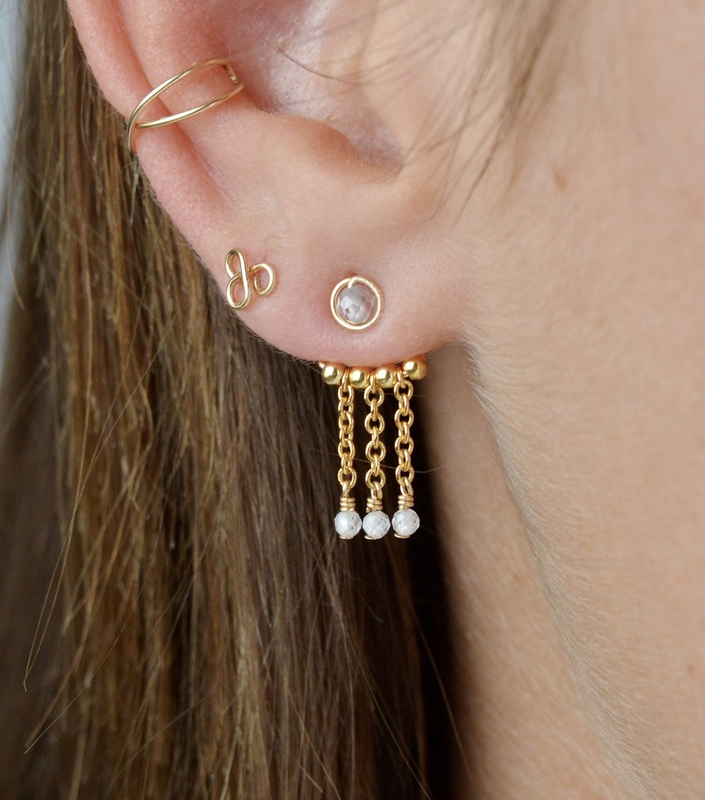Dos de boucle d'oreille frange en or laminé 14k et zircon - accessoires et bijoux d'oreilles