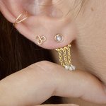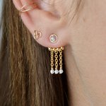 Moderne et raffiné, le dos de boucle Persée mini est le nouvel essentiel de la saison. Sa forme légèrement incurvée vers l’avant épouse parfaitement le lobe, tandis que de petites chaînettes d’or et des perles de zircon naturel viennent sublimer le design.