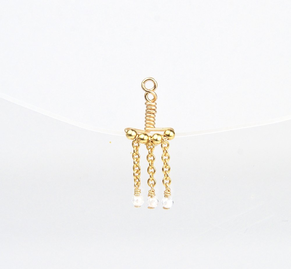 Toutes mes créations sont faites à la main au fil d'or laminé. Elles sont résistantes au temps, et à l'eau.