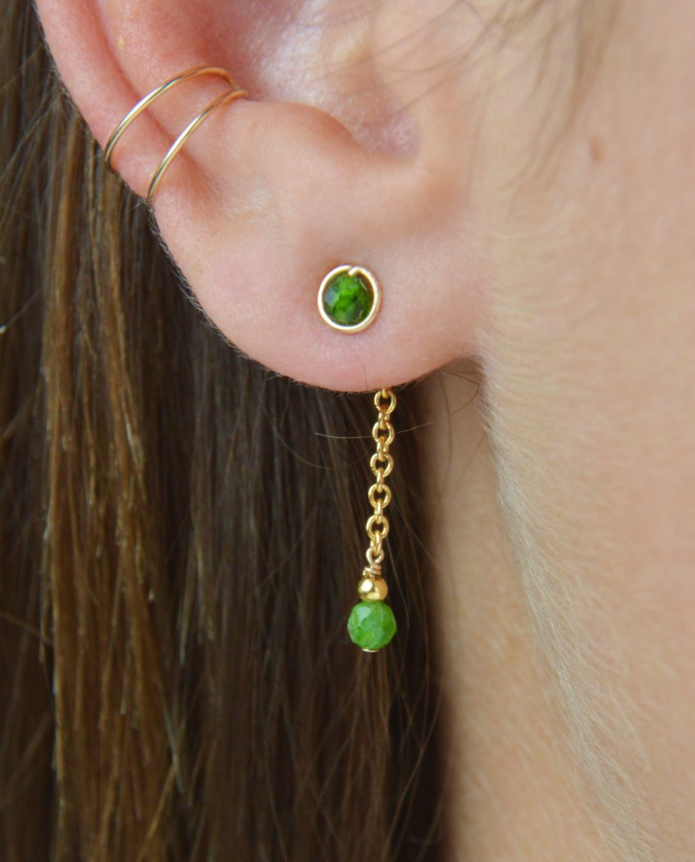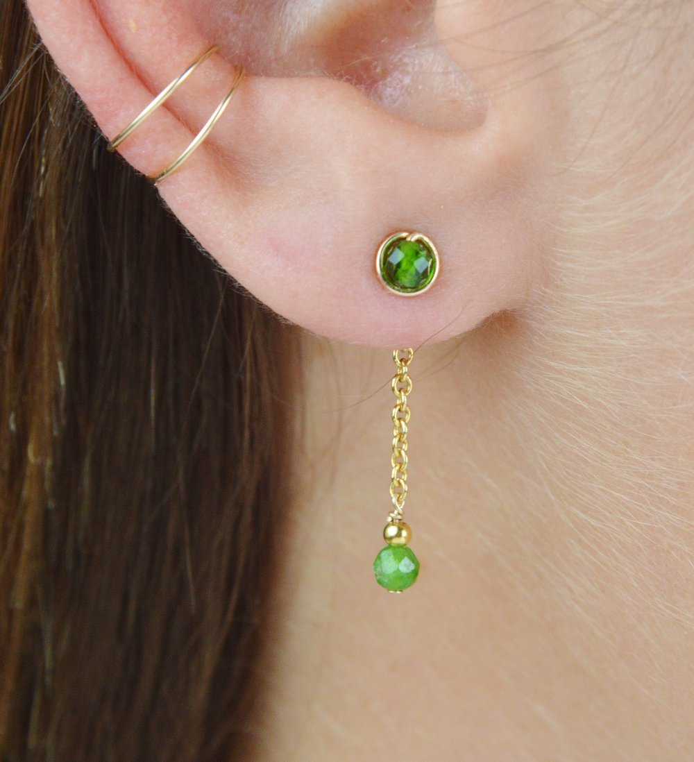 Dos de boucle d'oreille petite chaîne en or laminé 14k et diopside - Fermoir boucle d'oreille - bijoux d'oreilles