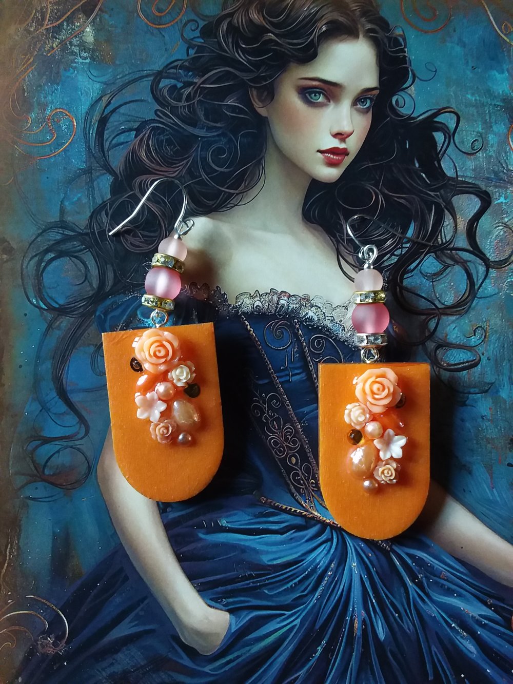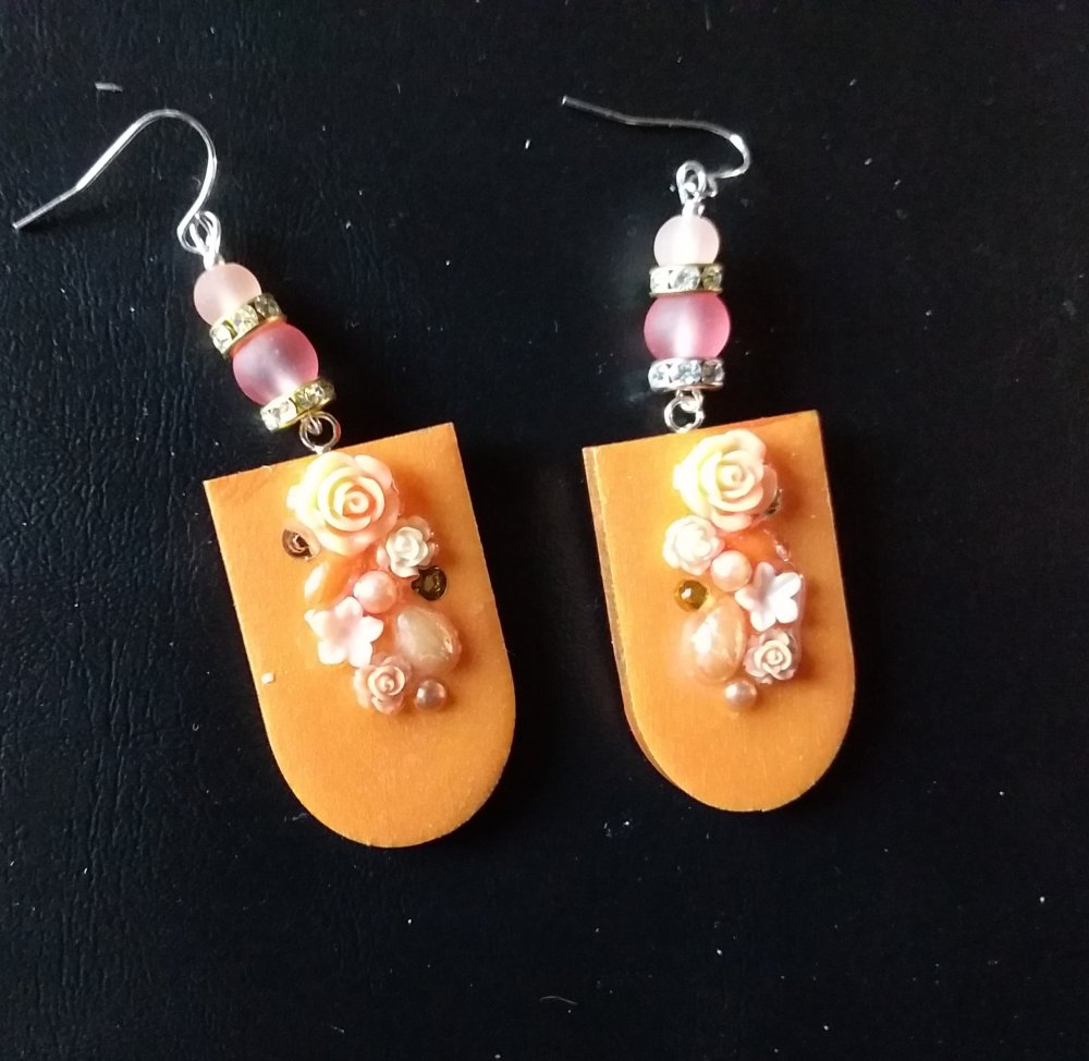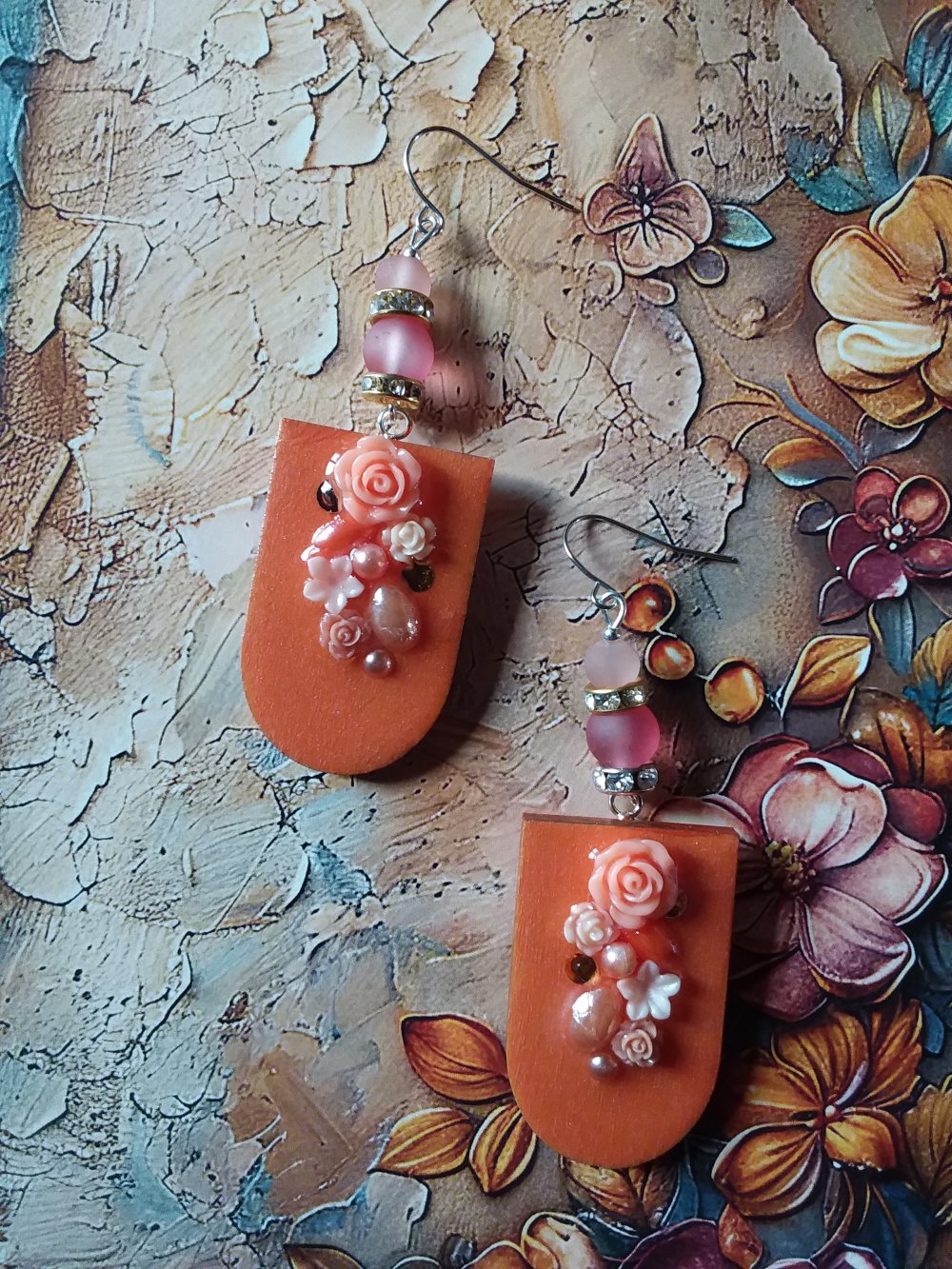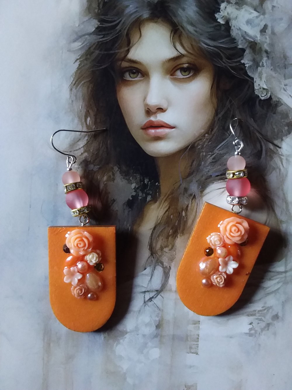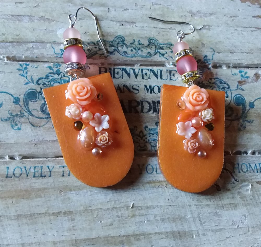 Boucles d’oreilles en bois décoré et résiné à la main