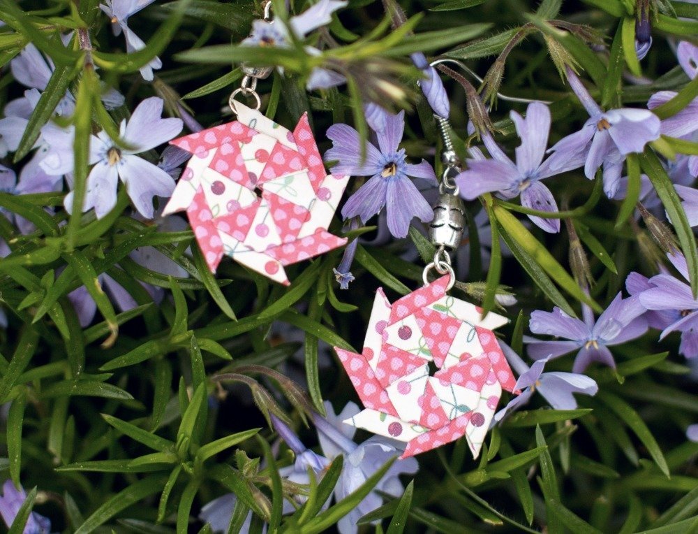 Étoiles en origami - boucles d'oreilles pendantes