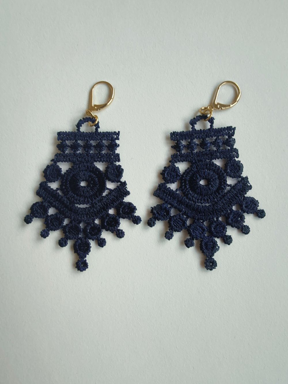 Les Filigranes Dentelle sont des boucles d'oreilles à partir de dentelle, apprêtées pour une belle tenue et extrêmement légères.