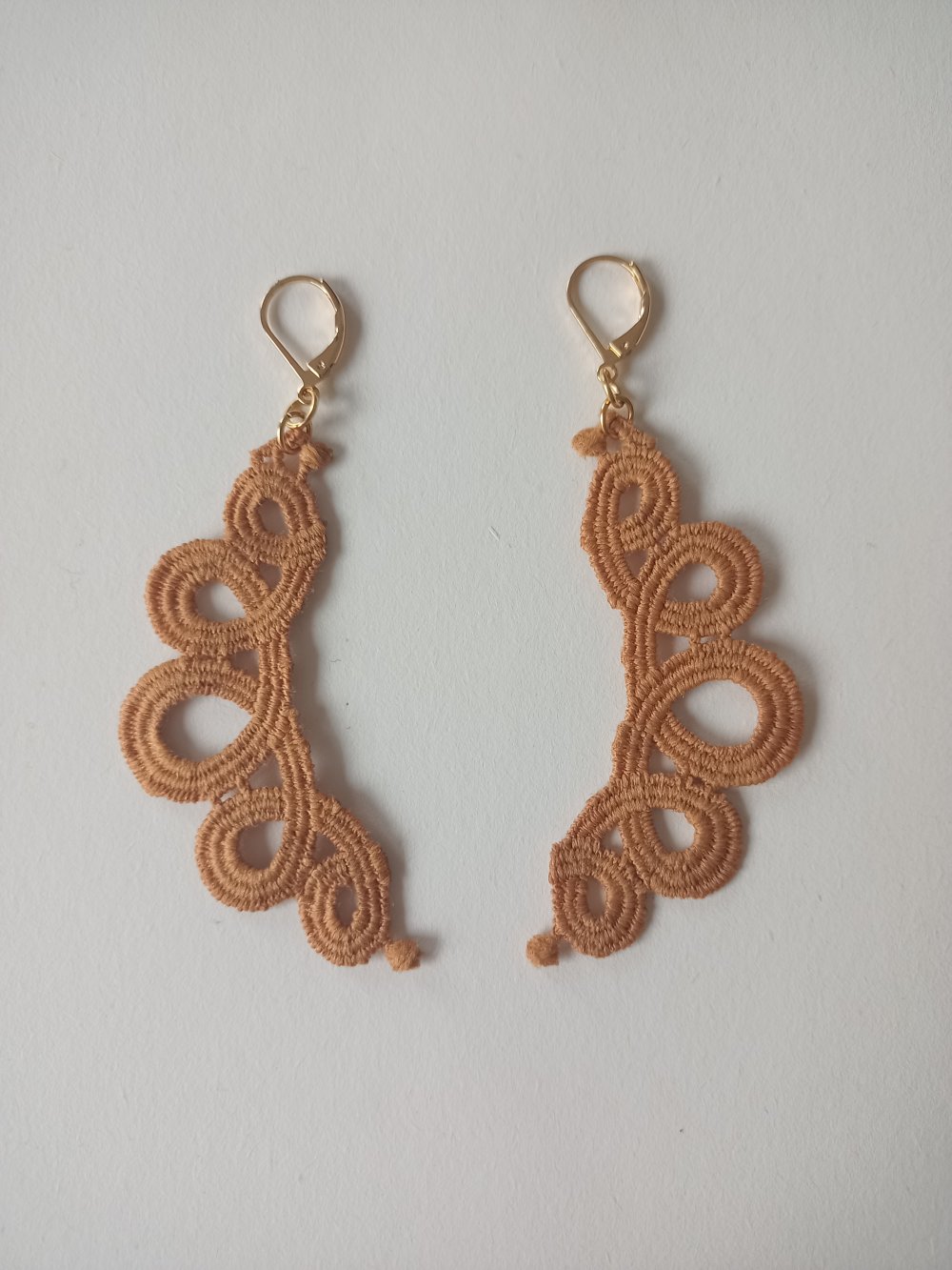 Les Filigranes Dentelle sont des boucles d'oreilles à partir de dentelle, apprêtées pour une belle tenue et extrêmement légères.