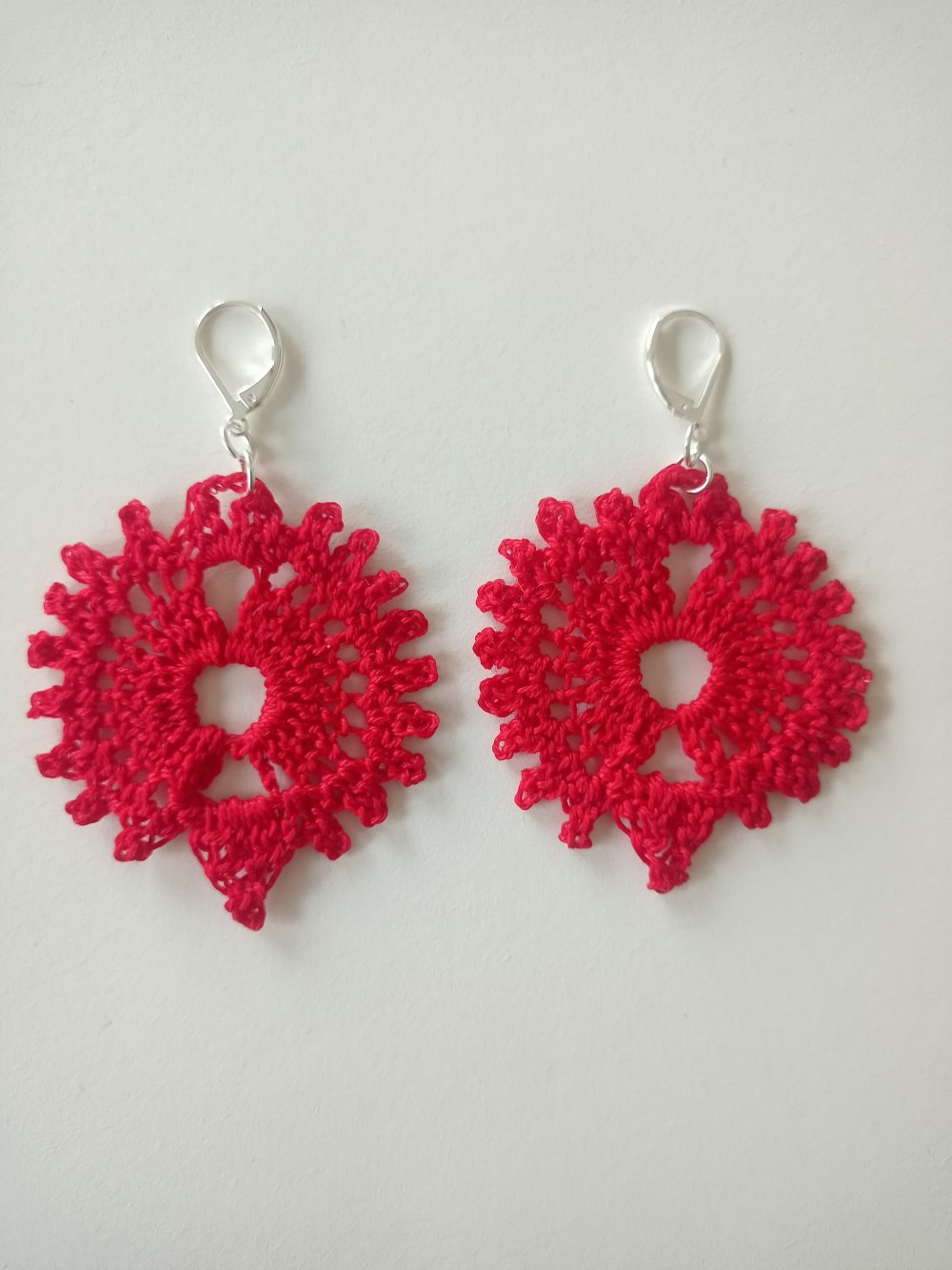 Les Filigranes sont des boucles d'oreilles en fil crocheté main, apprêtées pour une belle tenue et extrêmement légères.