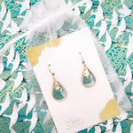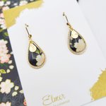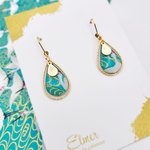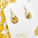 Un cadre doré finement torsadé entoure la goutte, tandis qu’une petite pastille dorée martelée vient ajouter une note précieuse et raffinée.