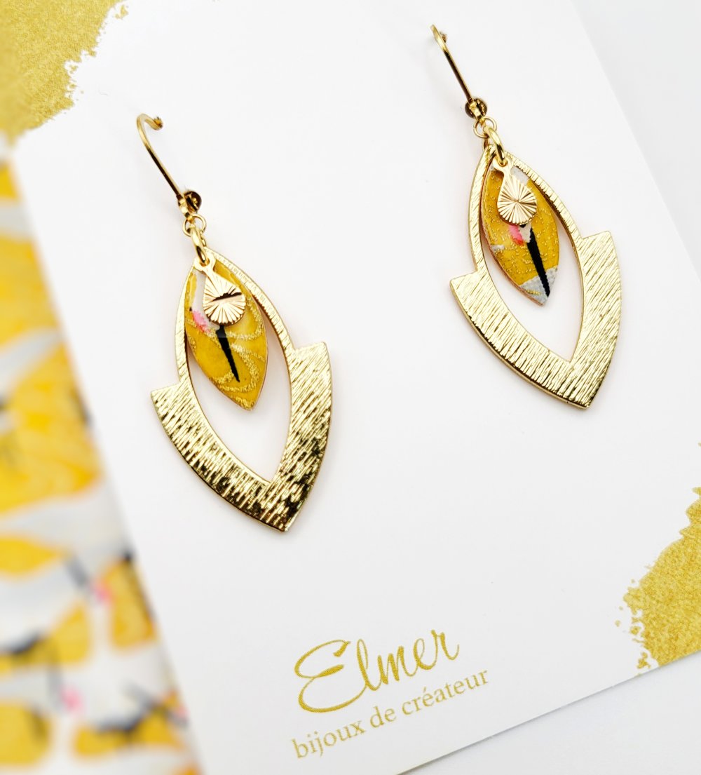 Chez Elmer, on ne crée pas juste des bijoux, on raconte des histoires. Créée en janvier 2024, notre marque marie l’art délicat du papier japonais traditionnel, le fameux papier Washi, avec l’éclat intemporel du métal doré à l’or fin. Résultat ? Des pièces uniques, colorées et empreintes de motifs floraux qui ne laissent personne indifférent.