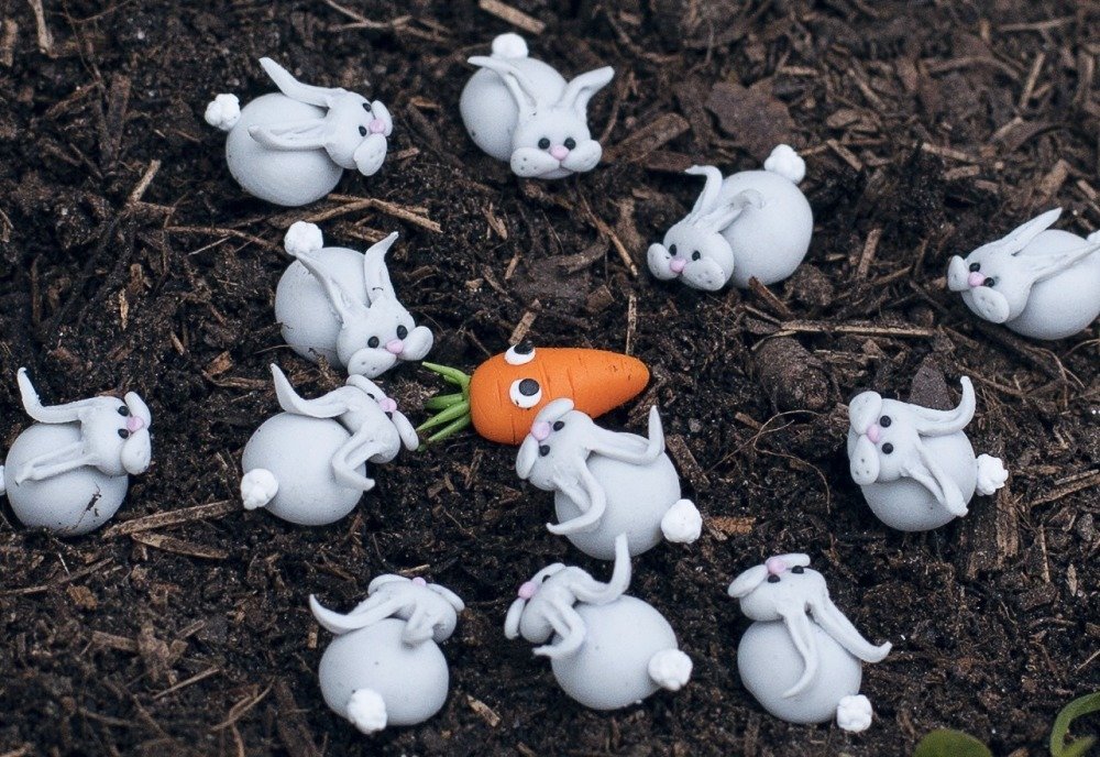 La création comprend un lapin et une carotte. (les autres lapins ne sont là que pour faire peur à la carotte)