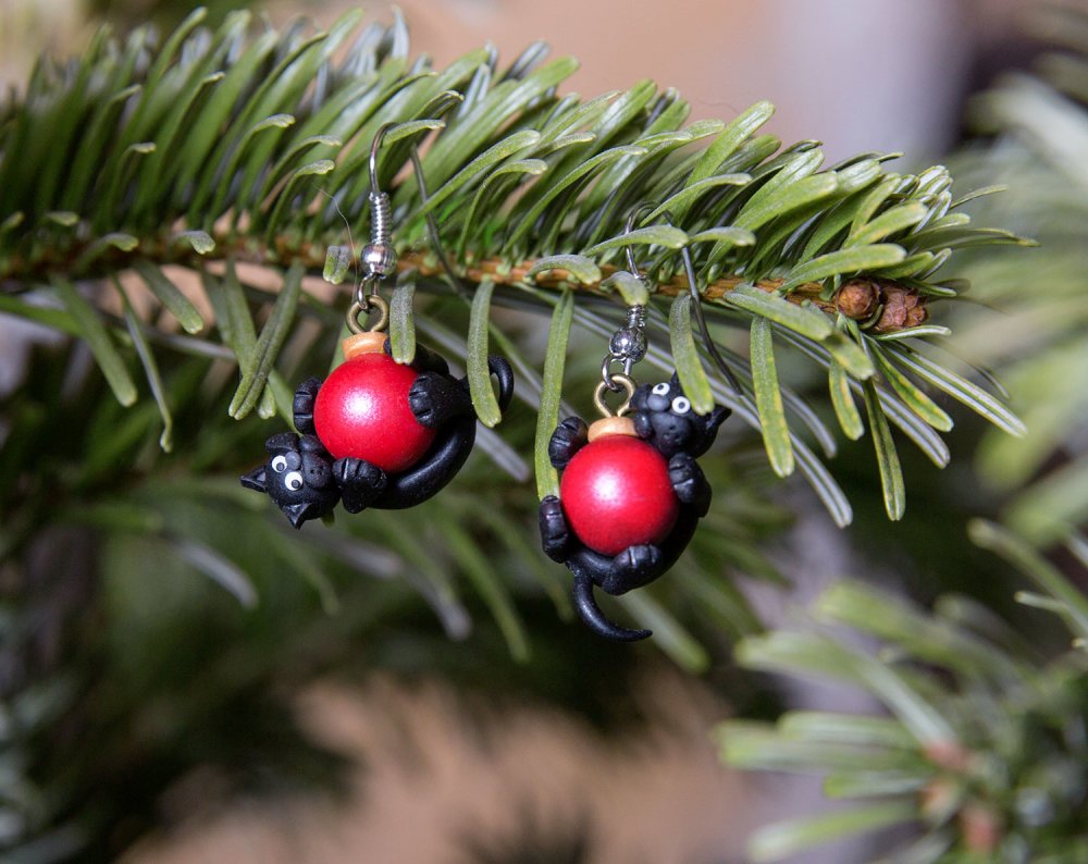 Deux chatons polissons s'amusent avec les décoration du sapin de Noël.