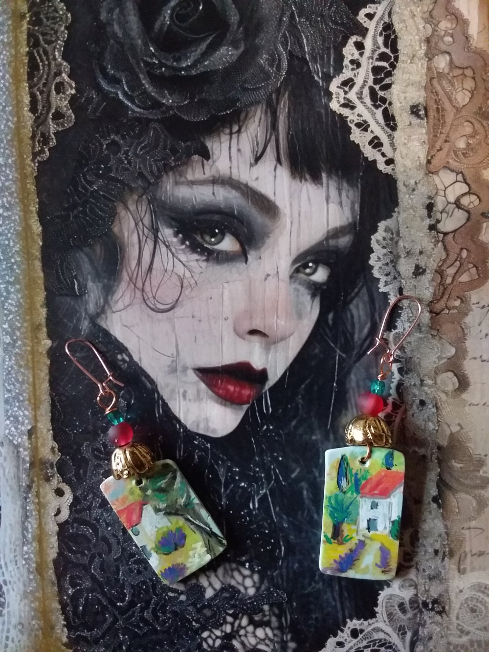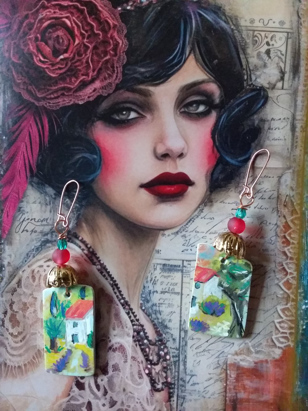 Les boucles d'oreilles sont montées sur crochets, mais je peux, à votre demande, sans frais supplémentaires, les adapter en clips...