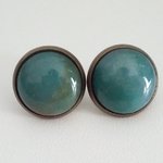 Onyx vert, clous d'oreilles laiton bronze avec cabochons ronds, pierre precieuse inde,boucles oreilles percees,cadeau fete anniversaire noel
