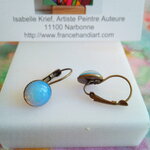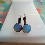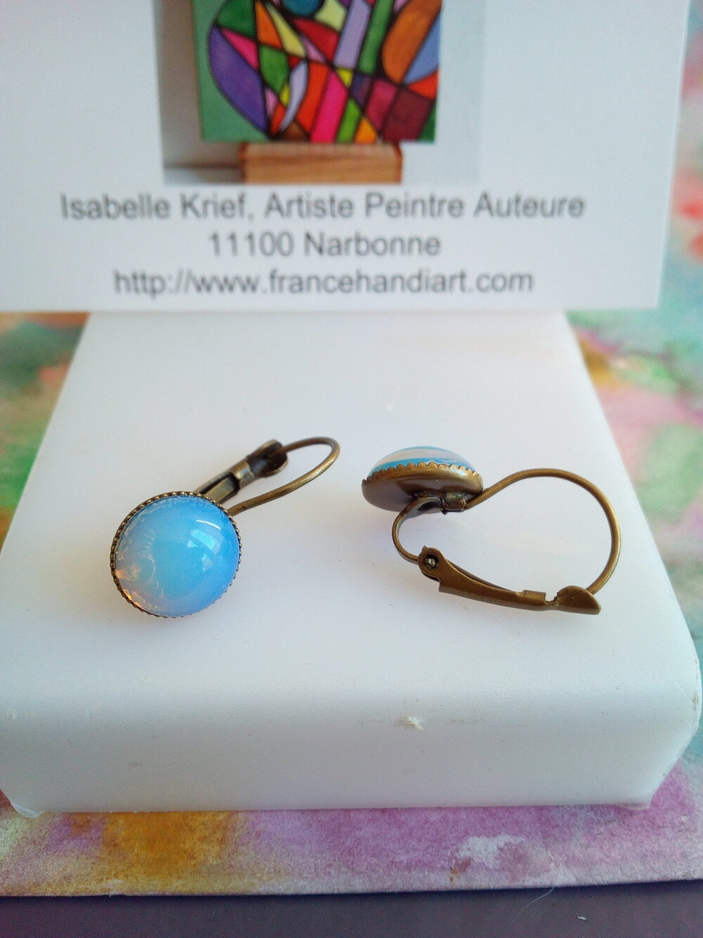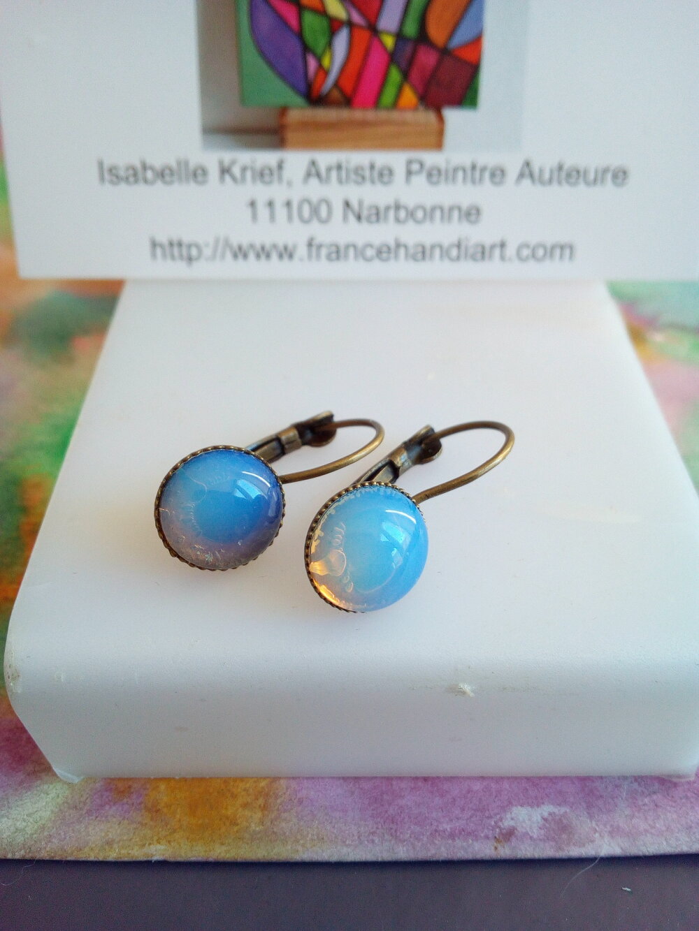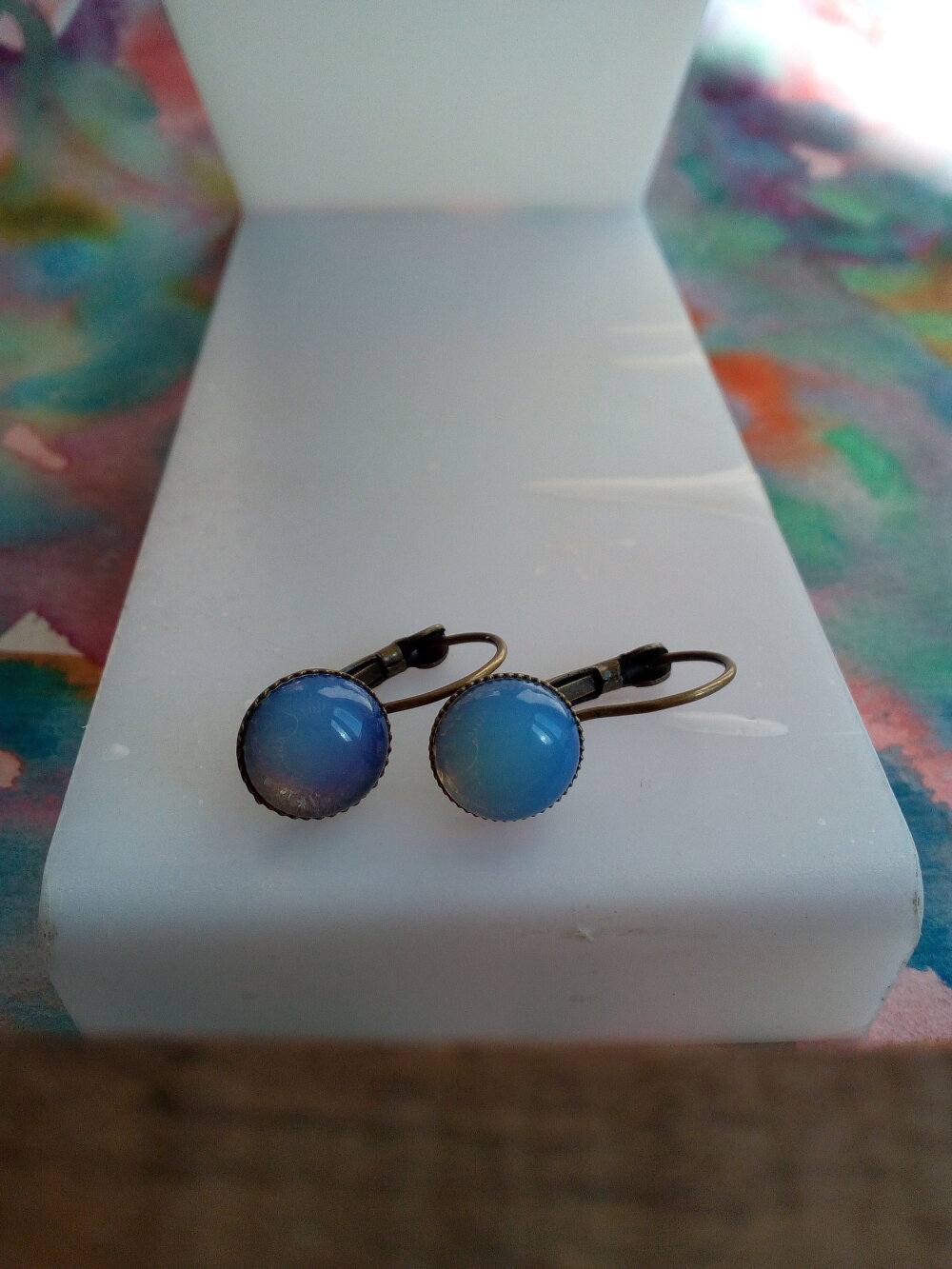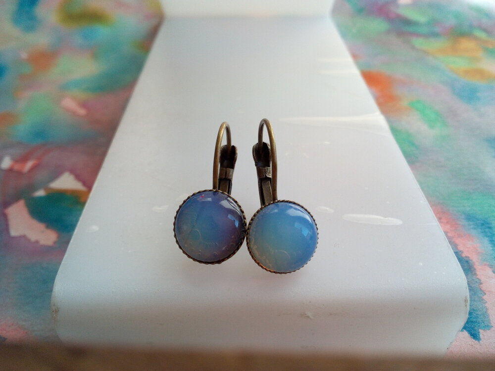 Opale,boucles oreilles dormeuses percees laiton bronze avec cabochons ronds 10mm,fait mains en france,cadeau fete anniversaire noel,boho