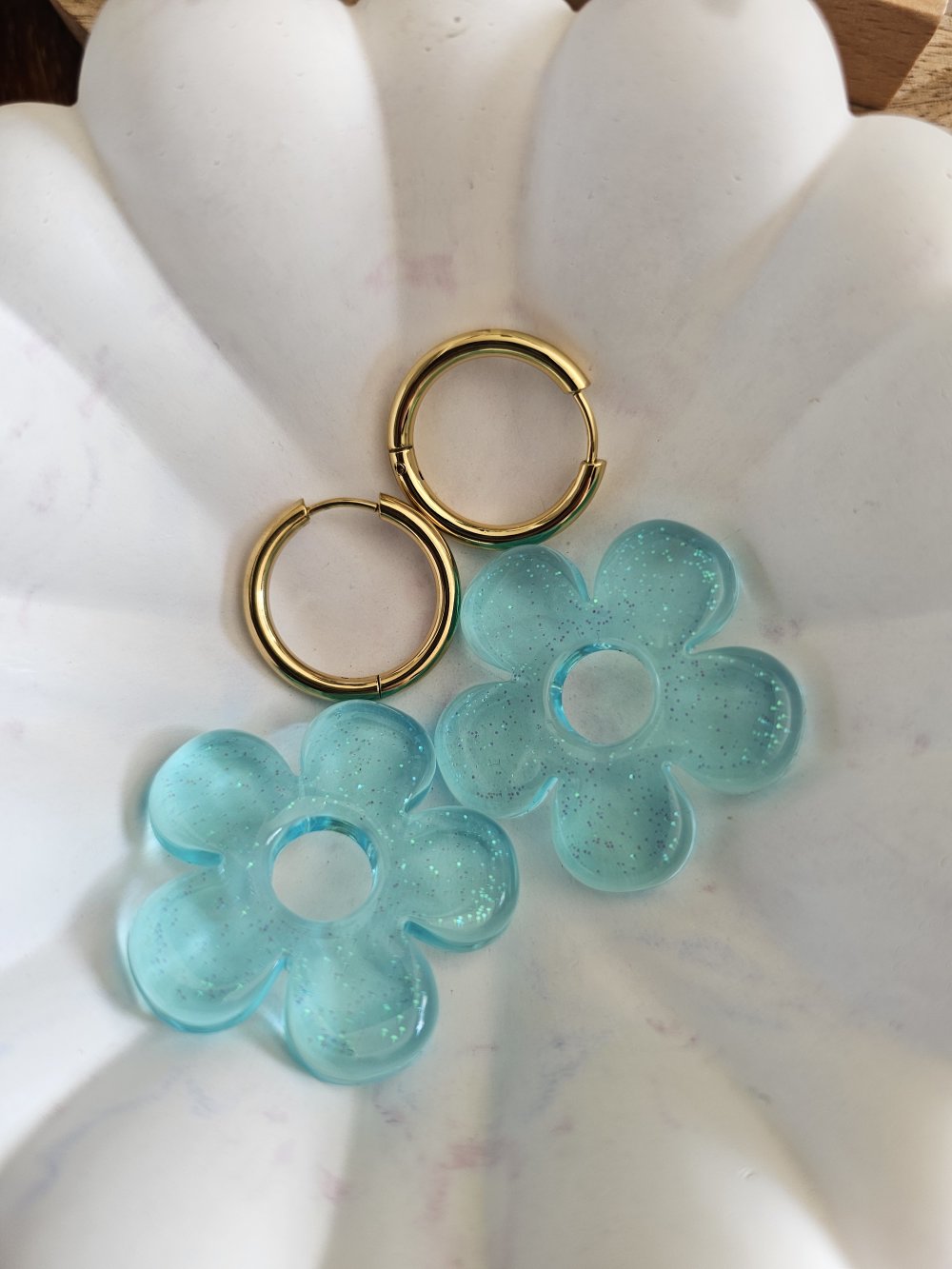 Boucles d'oreilles / Paire de pampilles fleurs, en résine époxy.