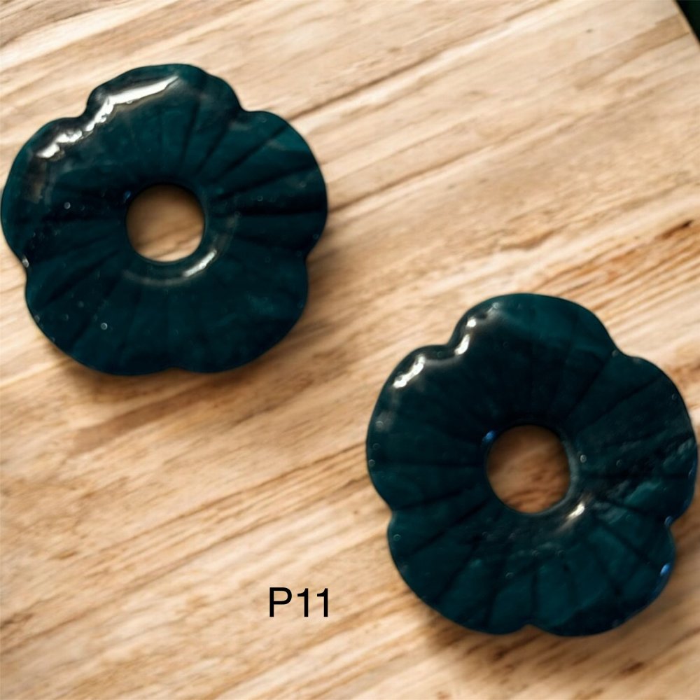 Pampilles fleurs de différentes couleurs et en pâte polymère qui peut s'adapter sur différentes créoles pour plus de renseignement, n'hésitez pas à me contacter.