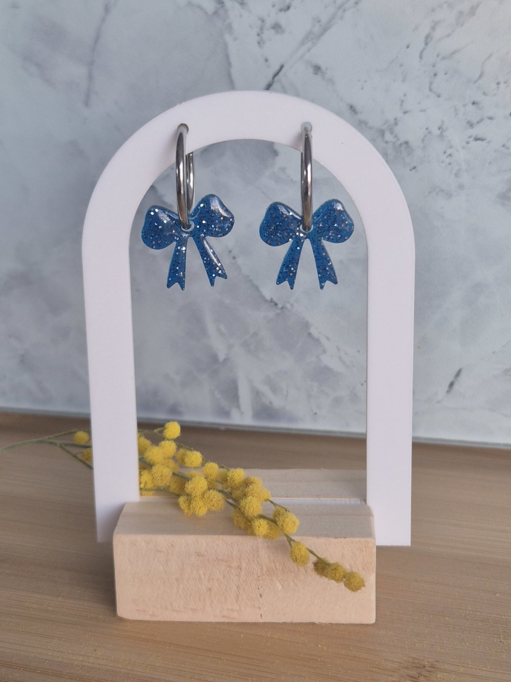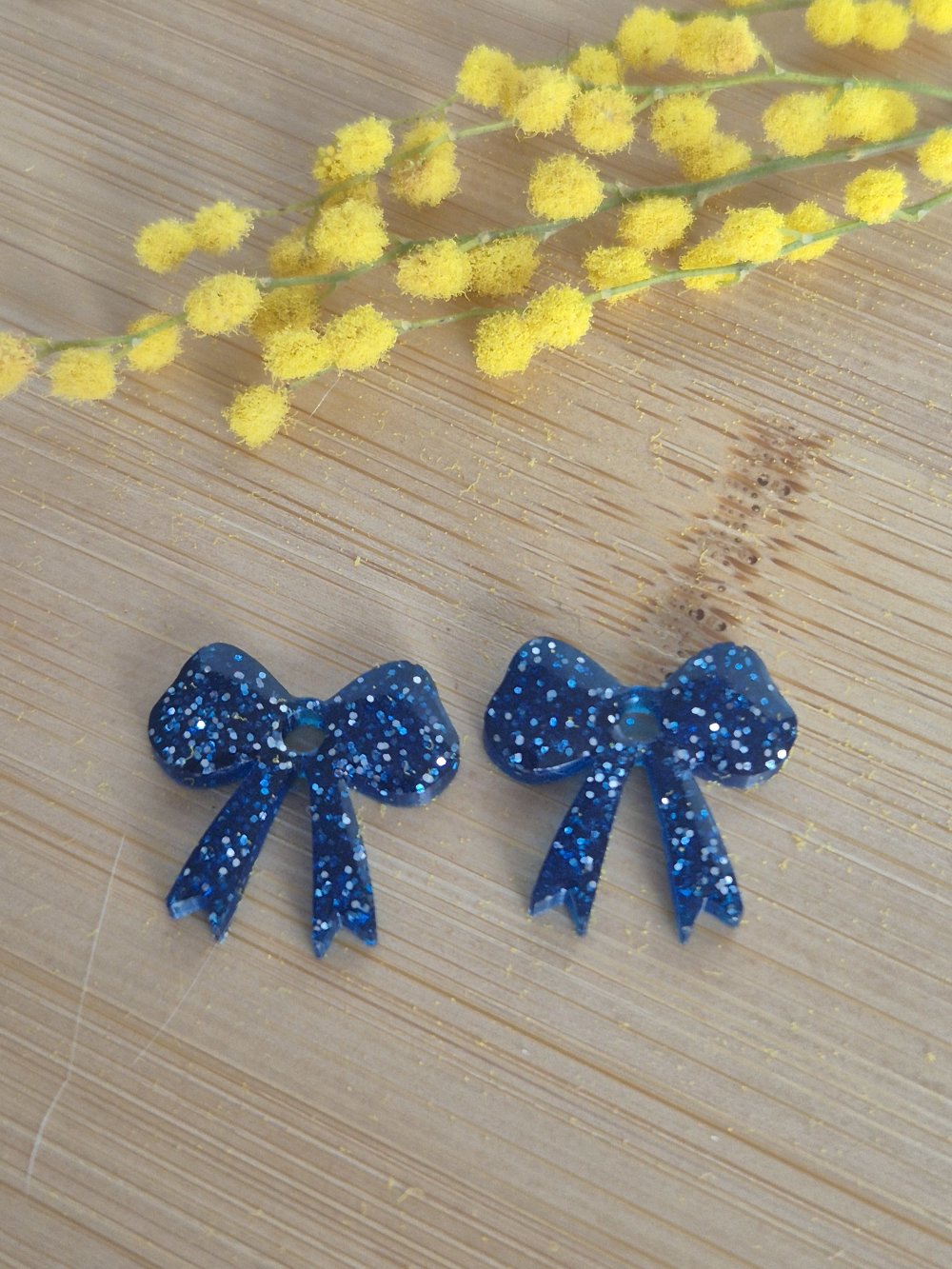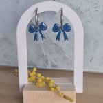 Paire de pampilles interchangeables petits nœuds bleus à paillettes.