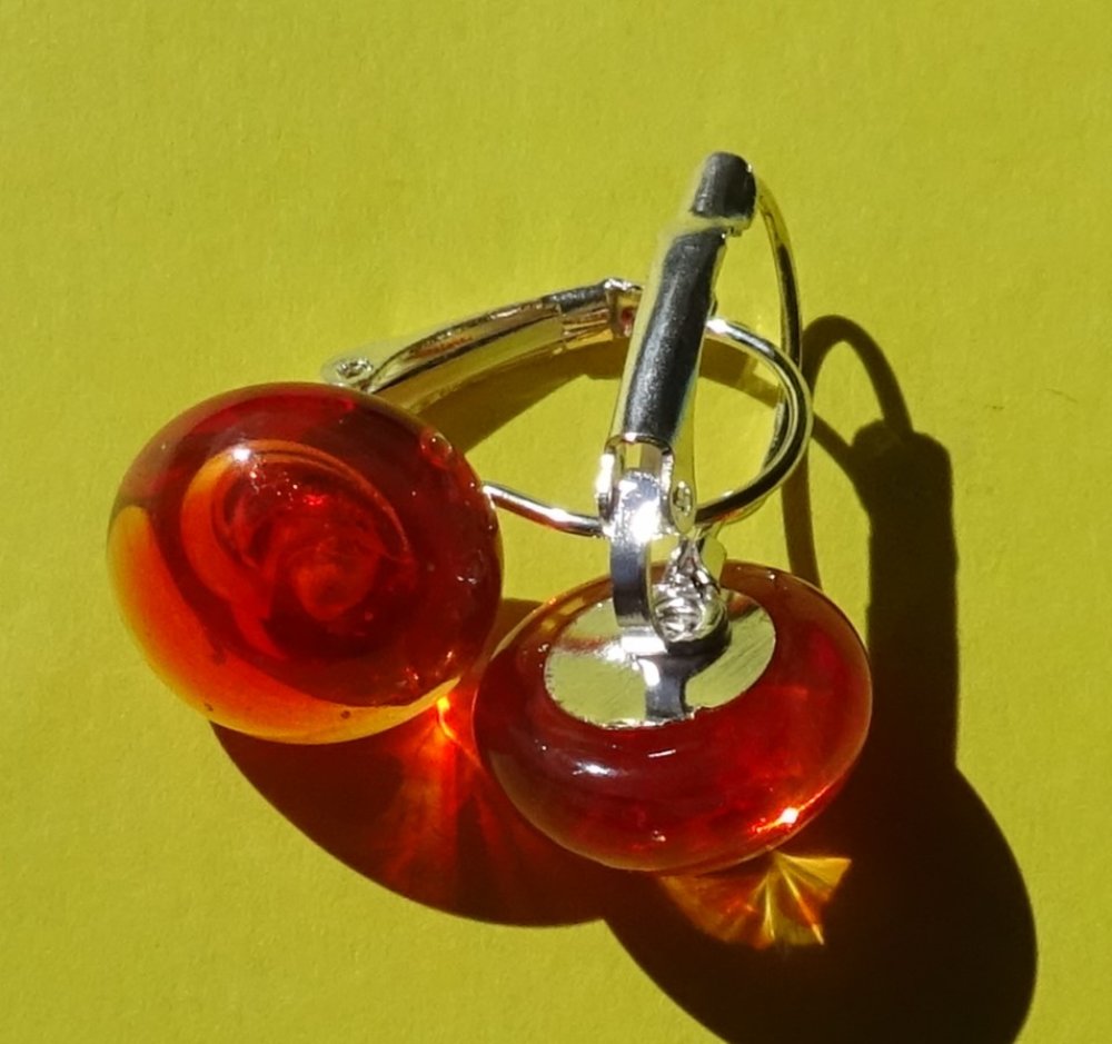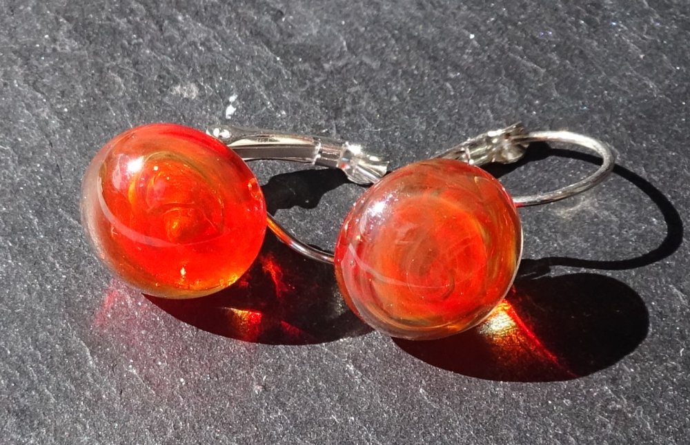 pendants d'oreille ornés de perles lampwork filées à la main par la créatrice