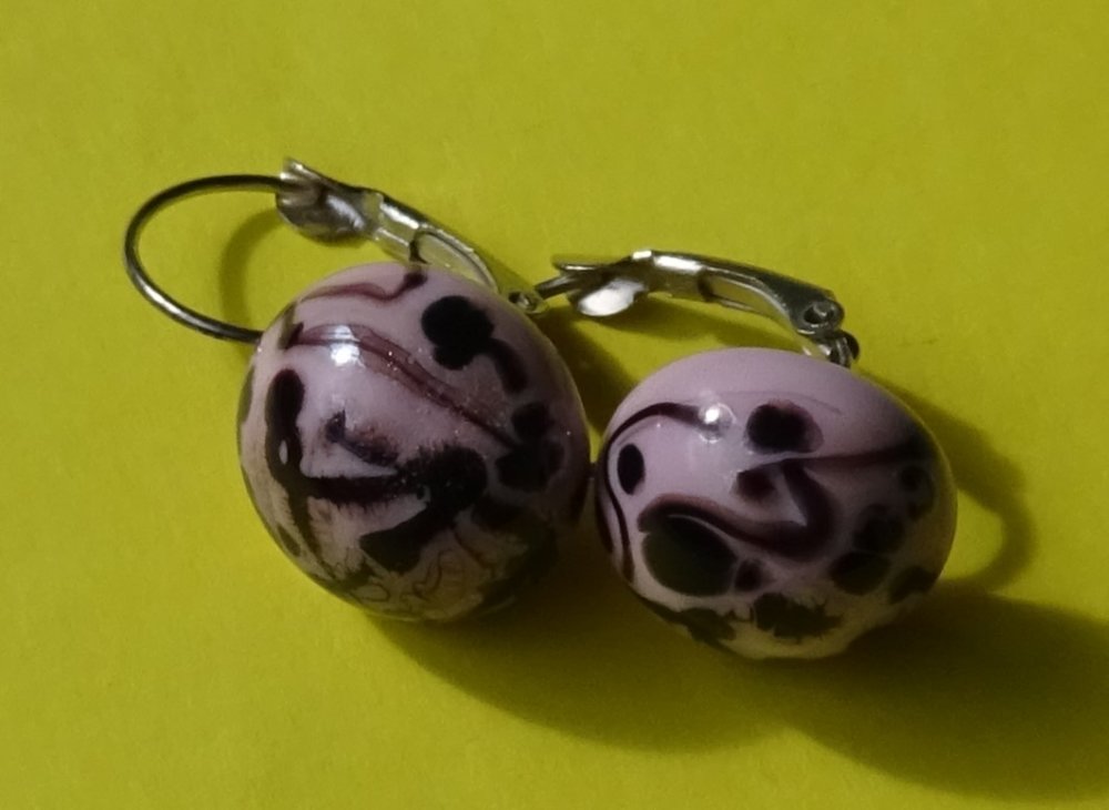 pendants d'oreille ornés de perles lampwork filées à la main par la créatrice
