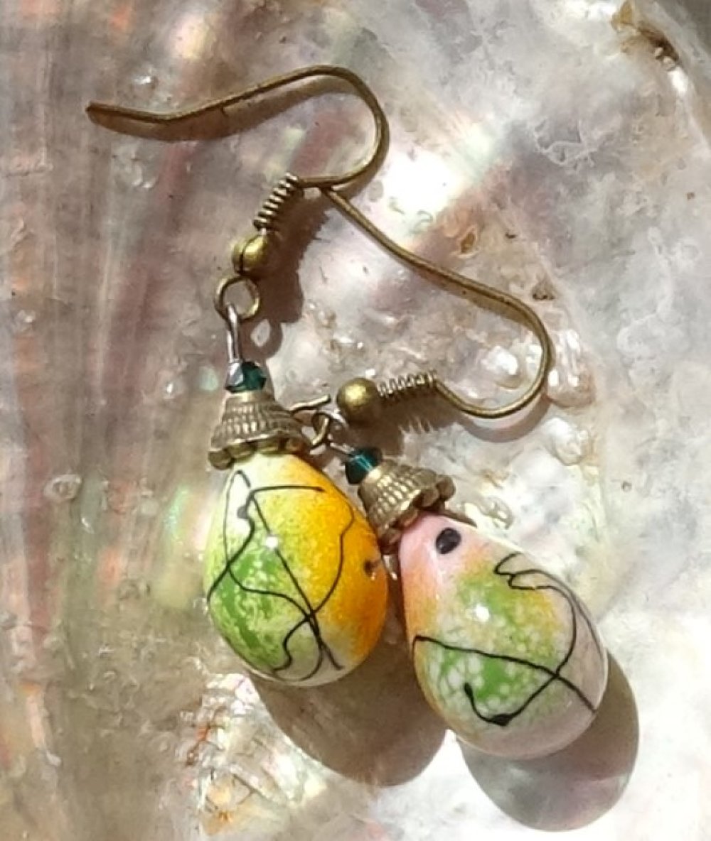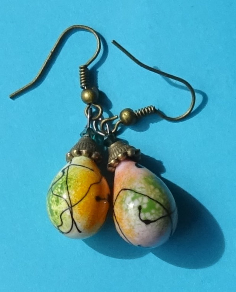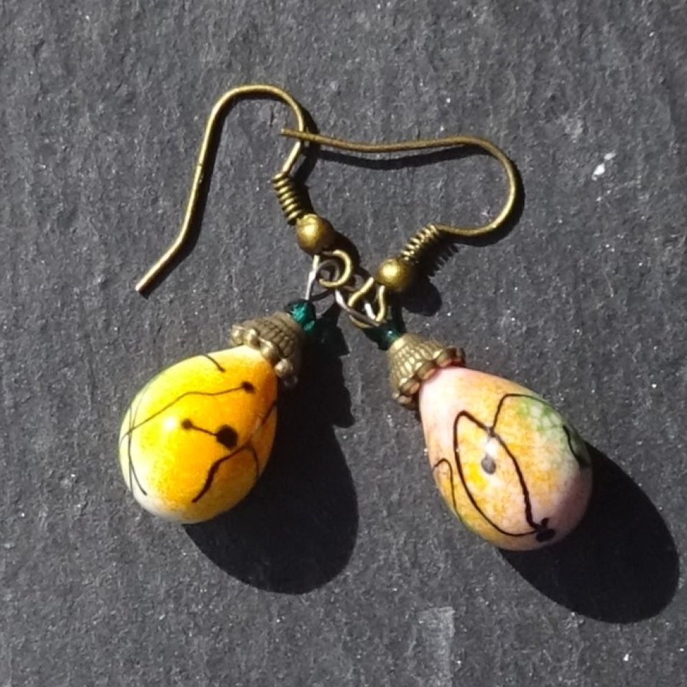 pendants d'oreille ornés de perles lampwork filées à la main par la créatrice