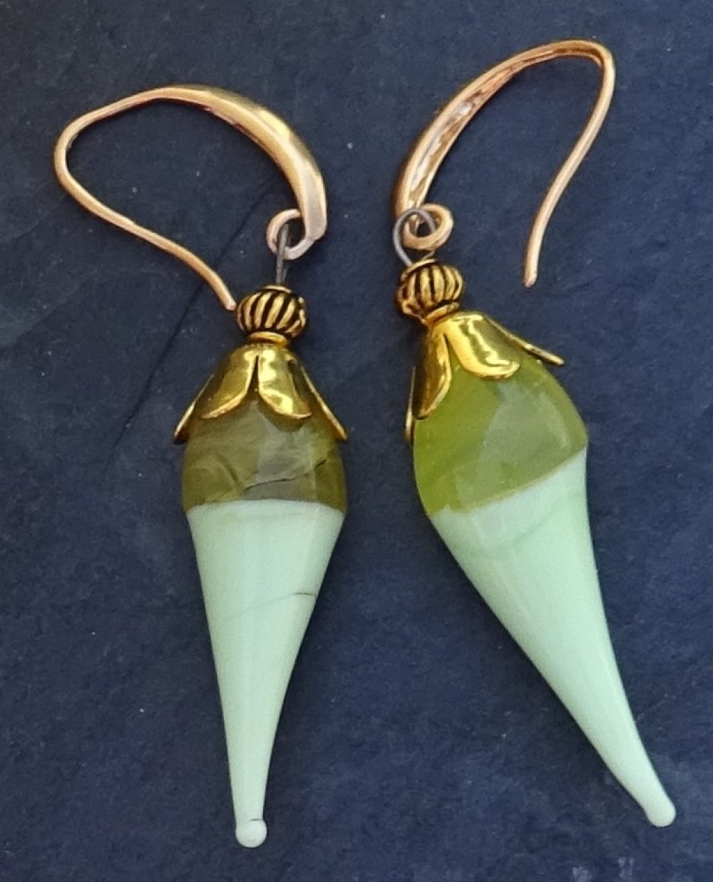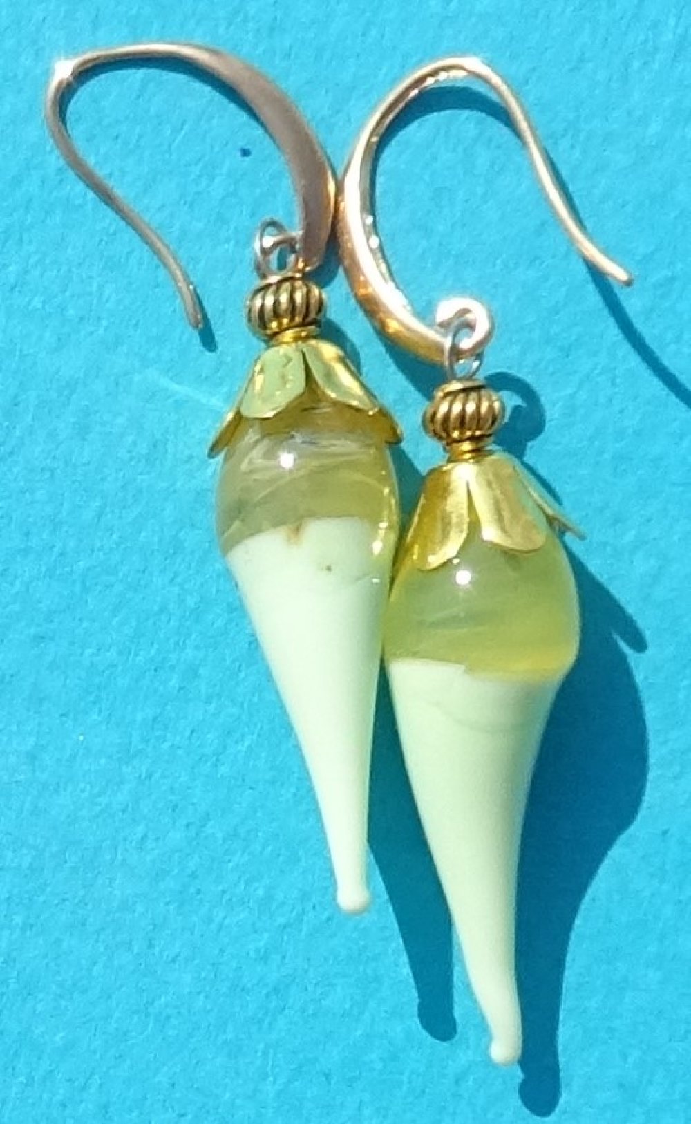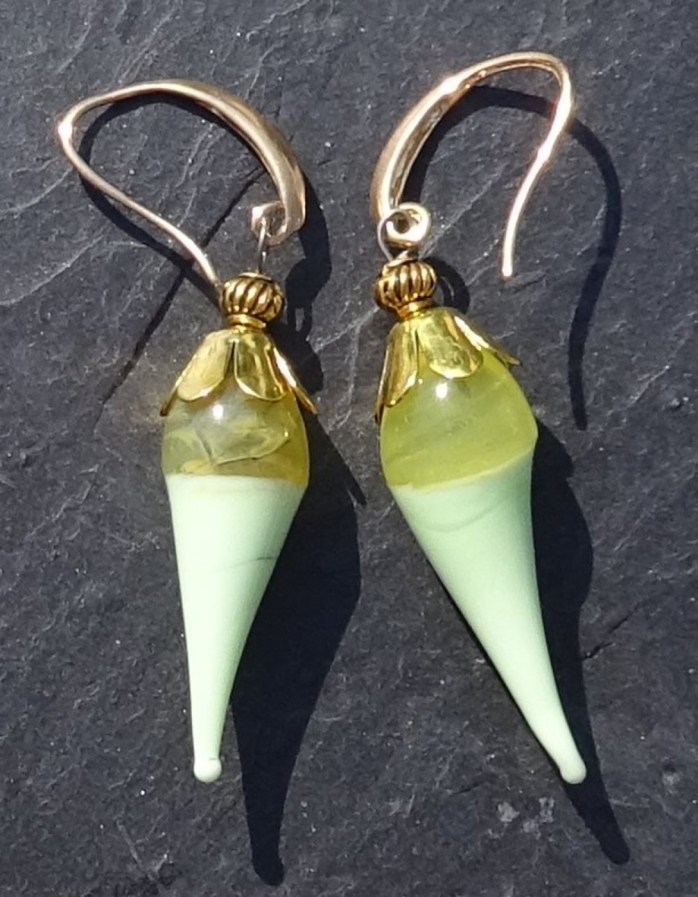 pendants d'oreille ornés de perles lampwork filées à la main par la créatrice