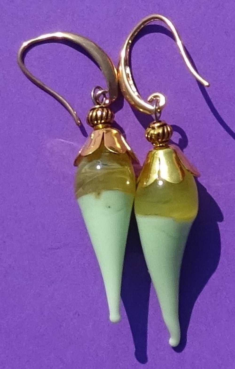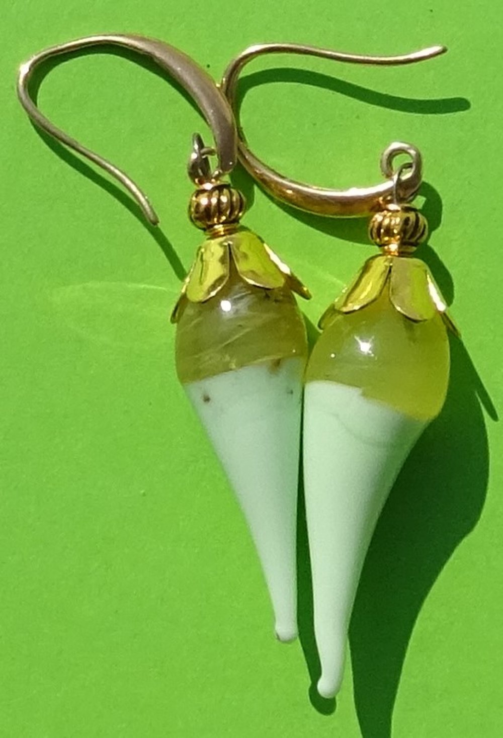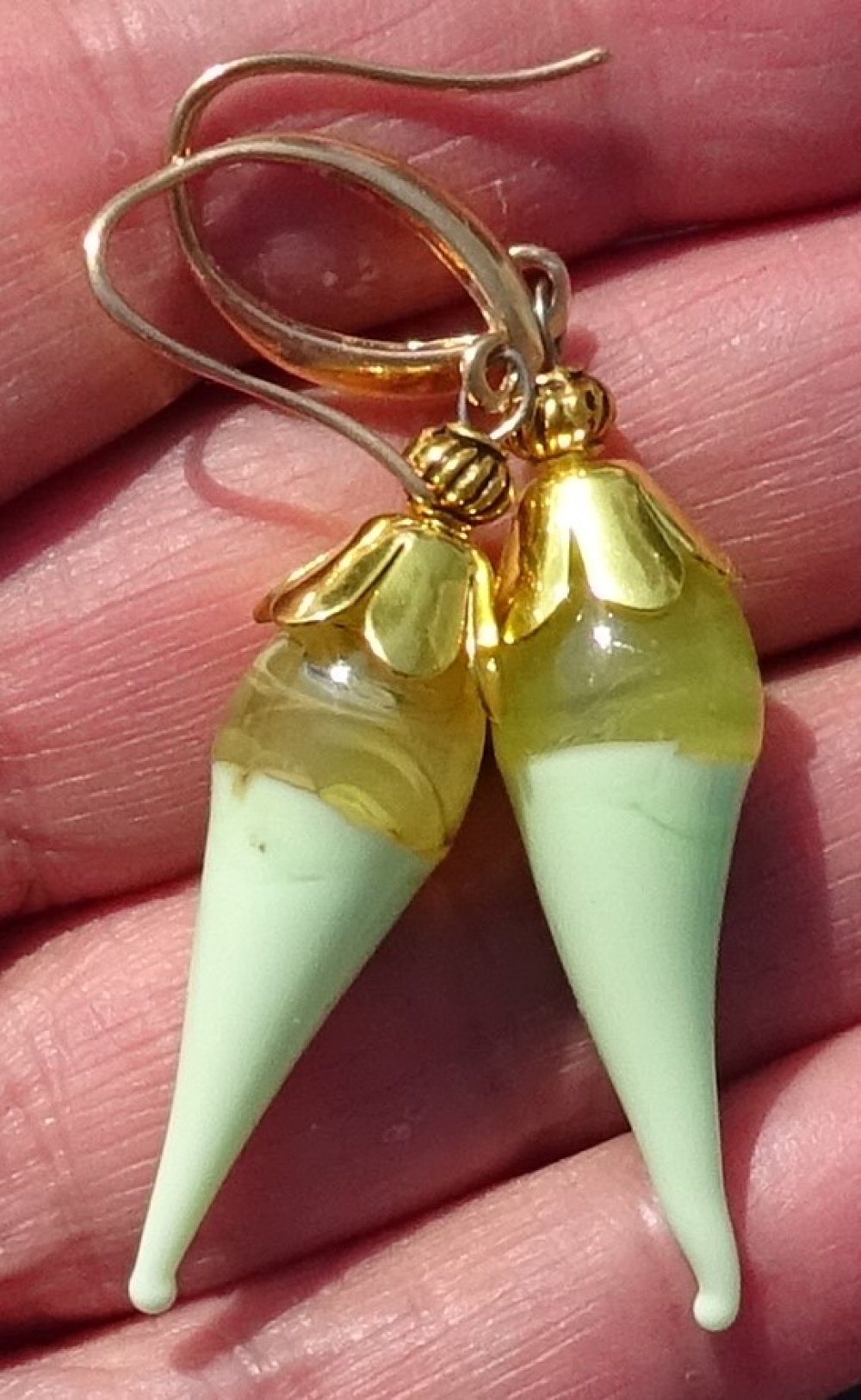 pendants d'oreille ornés de perles lampwork filées à la main par la créatrice